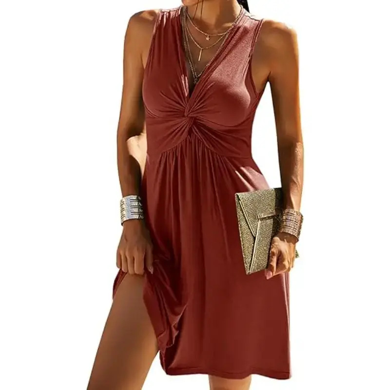 🌞 Imily Bela Women's V Neck Front Knotted Sleeveless Tank Dress 🌞