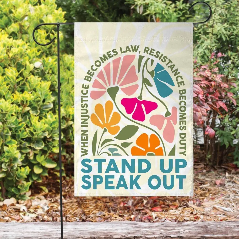 Stand Up Speak Out Anti Tr^mp Garden Flag Anti-Tr^mp Yard Sign Fdt Floral Flag Progressive Outdoor Decor Democrat Gift Protest Sign