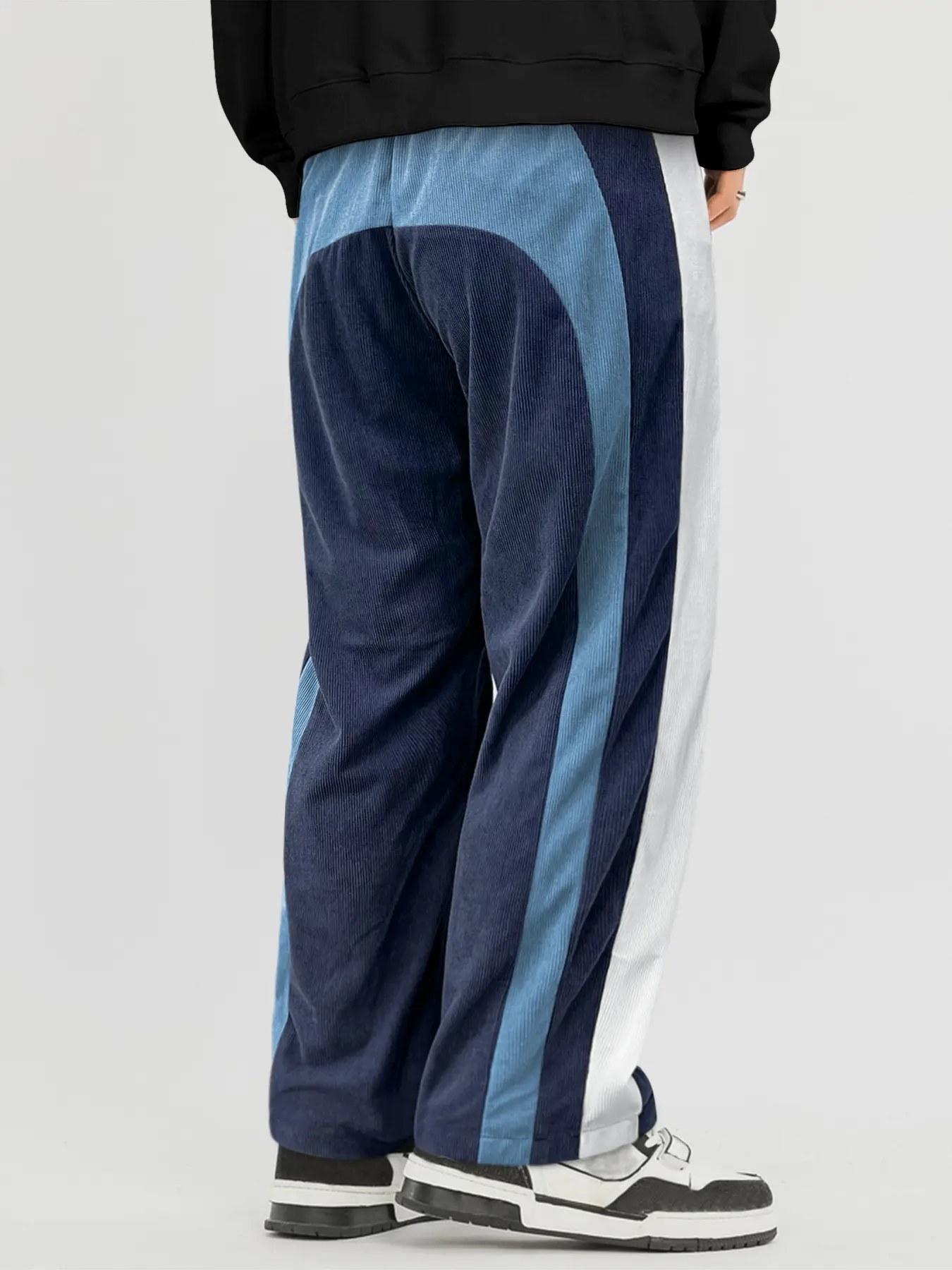 Casual Pants,Patchwork Casual Pants Three-color patchwork corduroy versatile retro straight-leg pants; unisex spring/summer loose wide-leg pants; drapey casual pants in Maillard tones