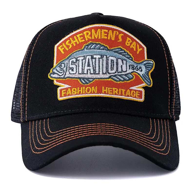 Unisex Summer Fishing Cap Breathable Mesh Trucker Hat Men Women Big Fish Fisherman Embroidered Snapback Hat Outdoor Fishing