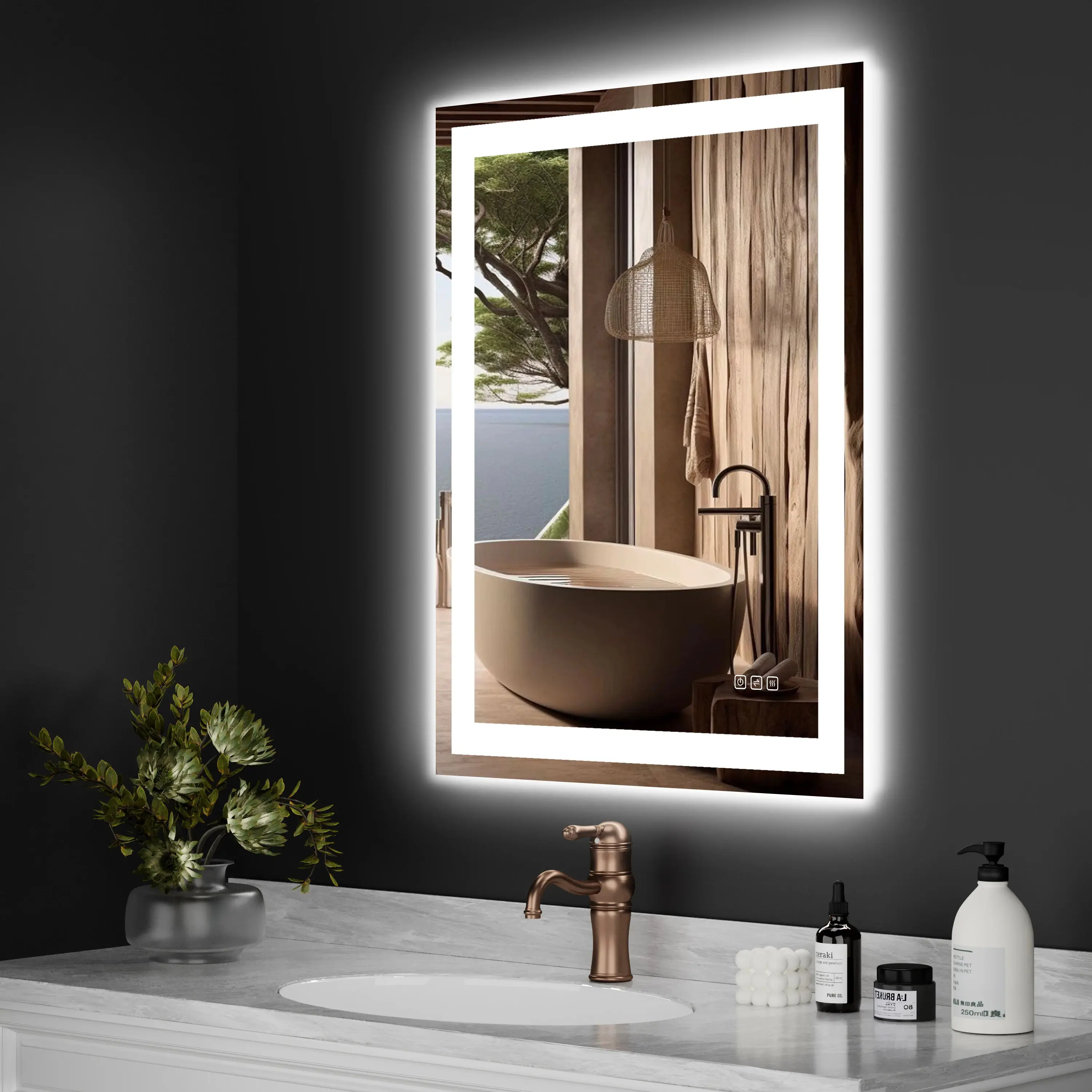 LED MIRROR,Eco-Friendly Tempered mirror glass,Safety backed Mirror