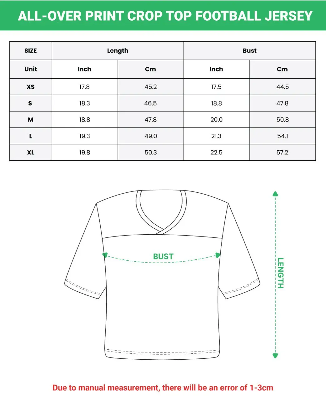 Our All-over Print Crop Top Football Jersey is a stylish and sporty choice for game days, workouts, or casual streetwear. Designed with a trendy cropped cut and athletic details, it perfectly combines comfort and fashion for everyday wear.