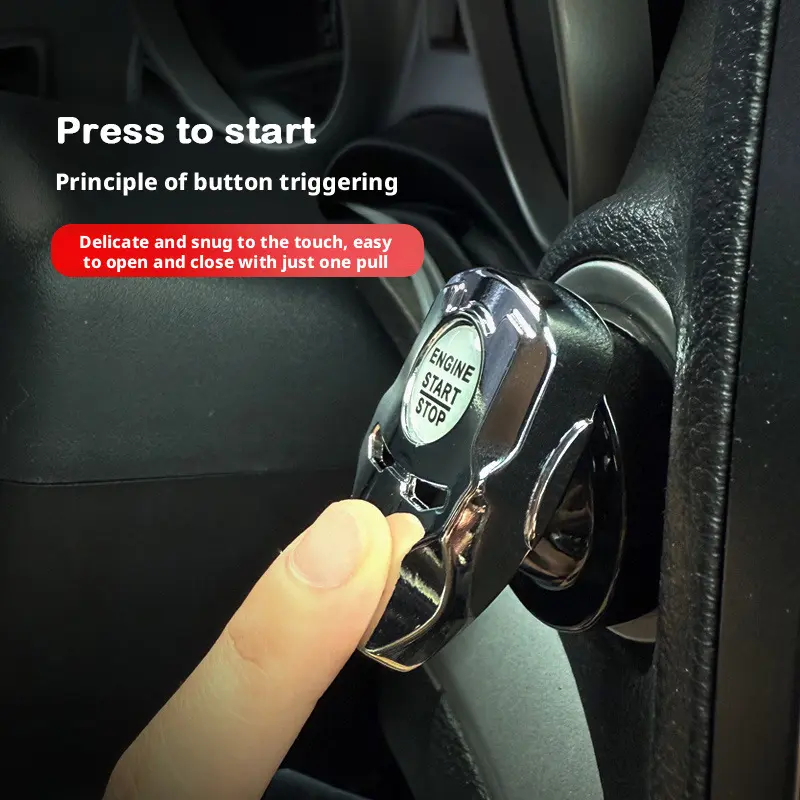 This metal ignition switch protector is a stylish upgrade for your car's interior. It transforms your engine start button into a personalized accessory. Perfect for those who want to add a unique touch to their vehicle. The cover is designed to protect the ignition switch while enhancing the car's aesthetic appeal.