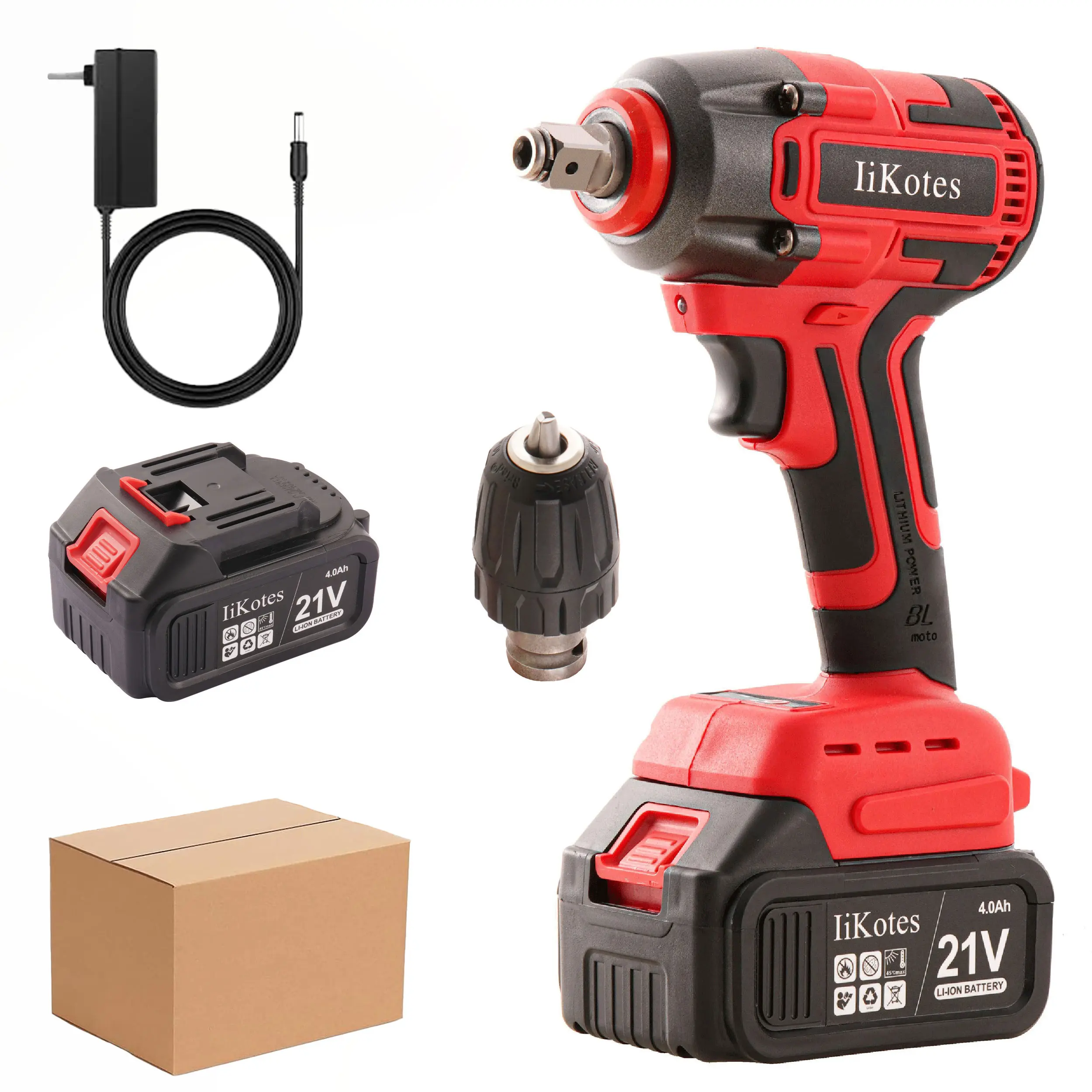 ·Complete Impact Wrench Kit with Accessories:Includes cordless impact wrench, battery, charger, and drill chuck. This impact gun kit is suitable for tire removal, automotive repair, construction, and general maintenance tasks.