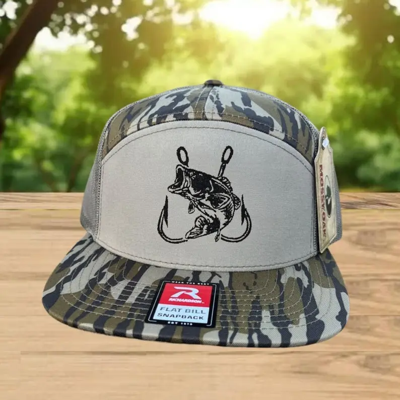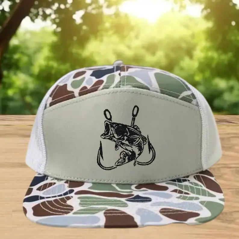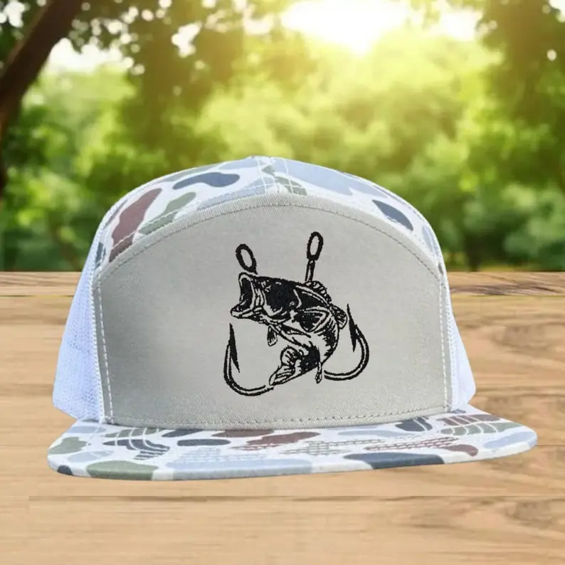 🎣 Fish Hook Embroidered Bottomland Camo Hat