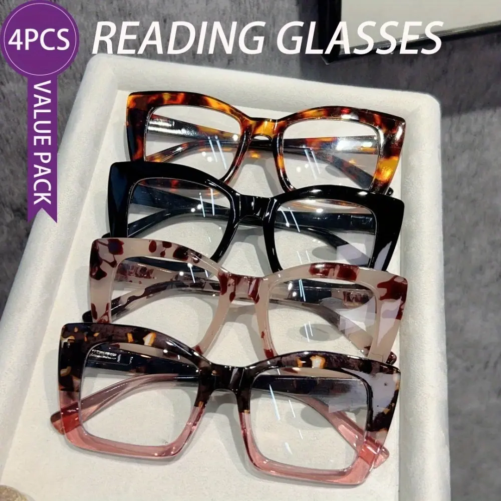 2026 New 4 Pairs Multi-Color Cat Eye Reading Glasses for Women & Men, Fashion Large Frame Trendy Eyeglasses with Sturdy Spring Hinges, Perfect for Halloween & Christmas Gifts