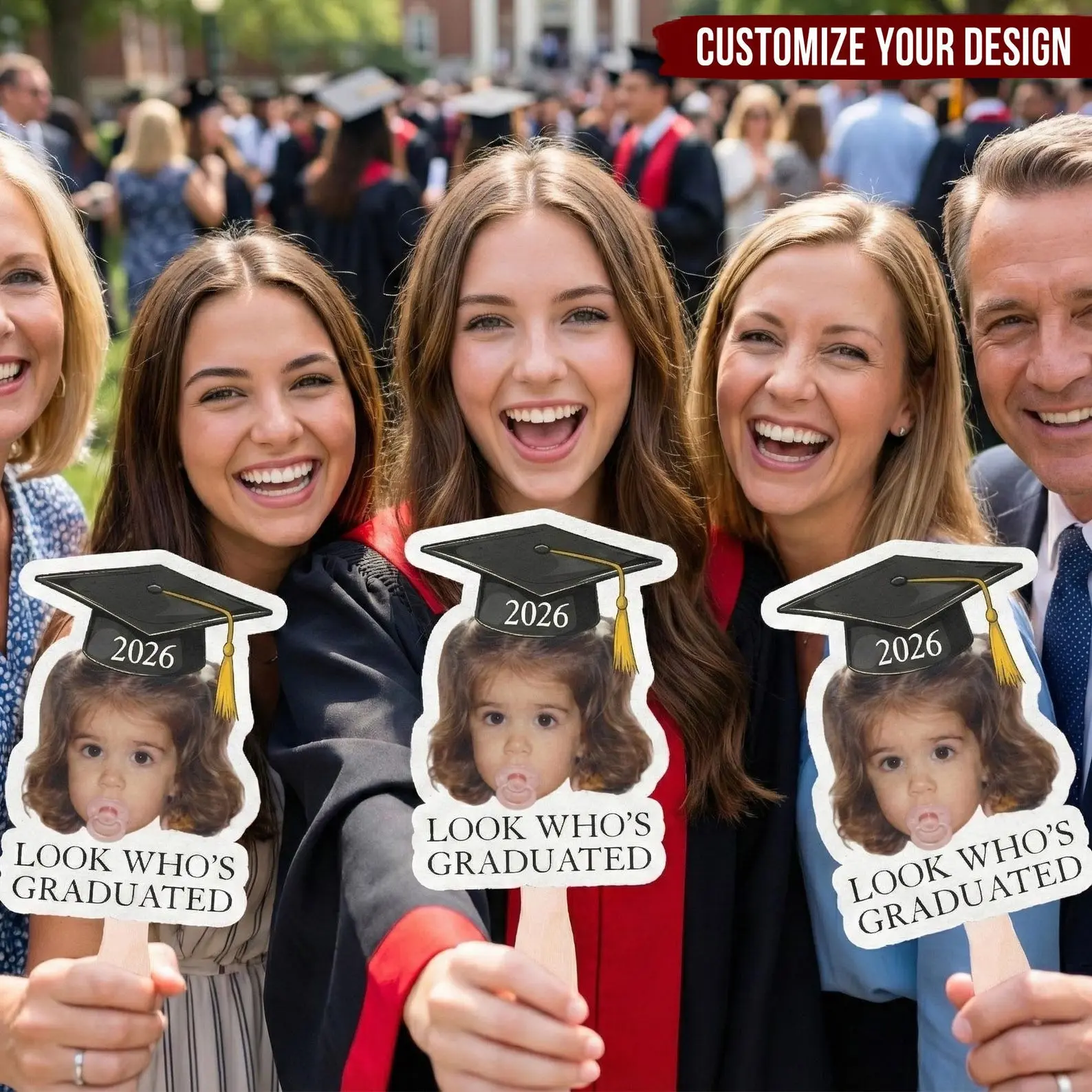Custom Vintage Childhood Photo, Graduation Gift, Personalized Graduation Fan, Class Of 2026 Funny Face Prop, Senior Ceremony Hand Fan