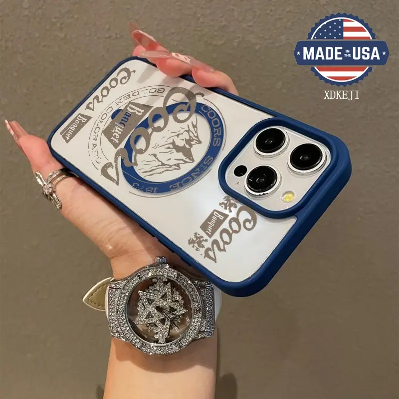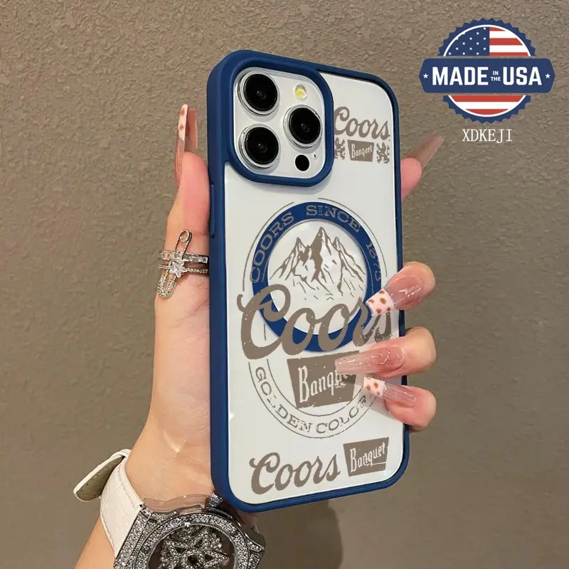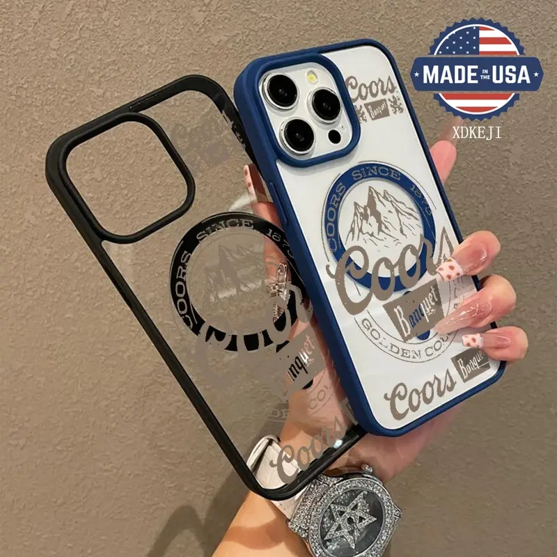 Vintage COORS Letter Pattern Premium Magnetic Phone Cases for iPhone 16 15 14 Pro Max 13 12 11 Plus Smartphone Shockproof Protection Acrylic Cover Cellphone Protective magsafe magnetic case Aesthetic Resistance Casing Protector Silicone White