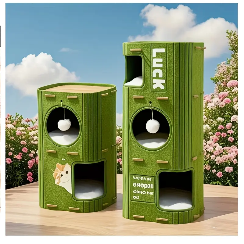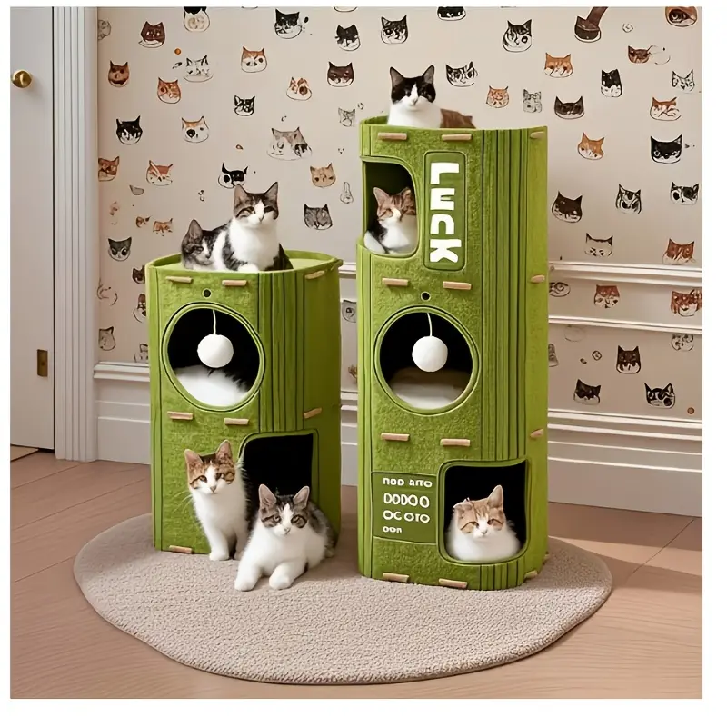 Double-layer play and rest area: two spacious cave compartments allow cats to sleep, hide, and play freely; an open-top platform is a perfect spot for cats to sunbathe and survey their territory.