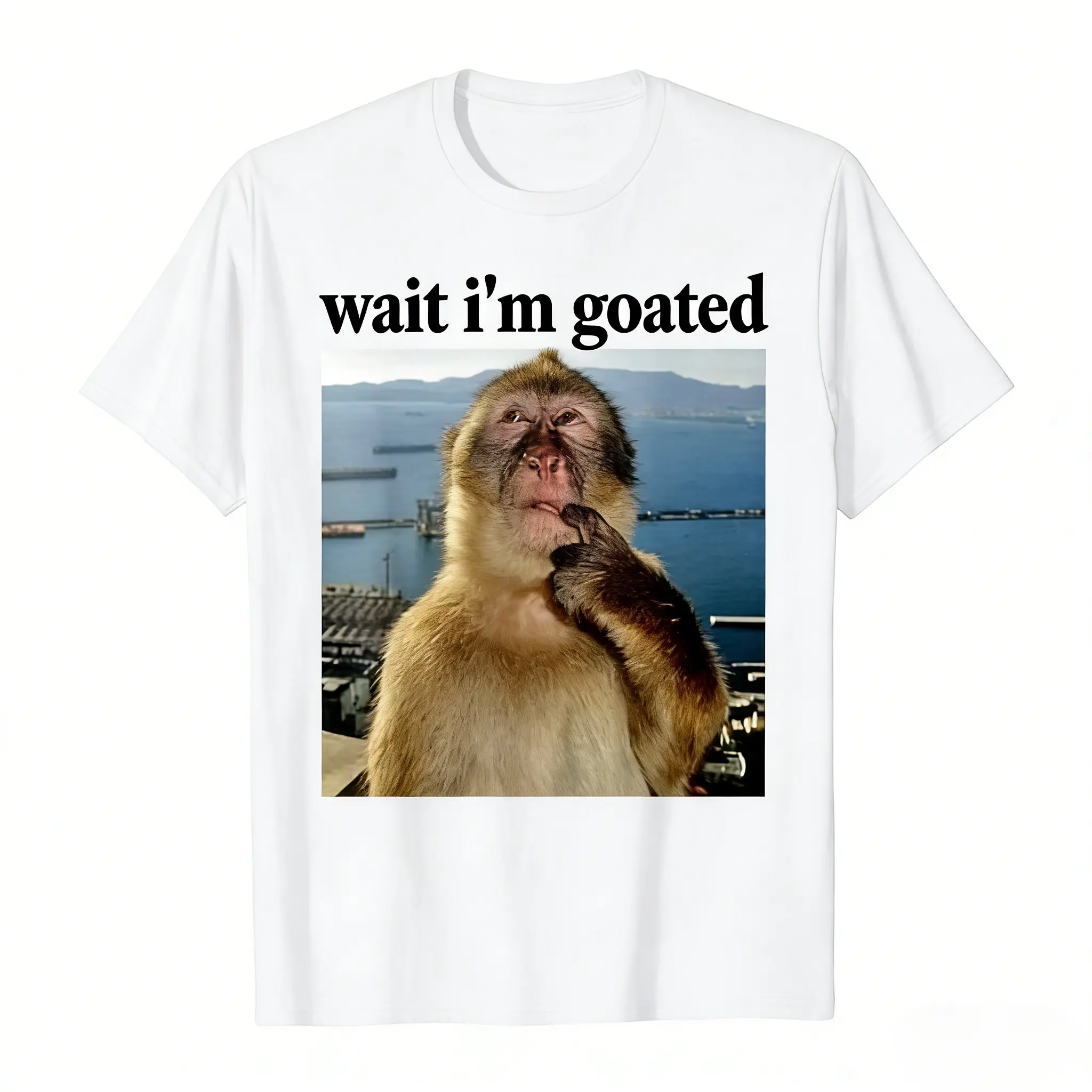 π΅π₯100% Cotton Funny Thinking Monkey Meme Graphic T-Shirt β "Wait Iβm Goated" Viral Brainrot Humor Teeπ₯π΅