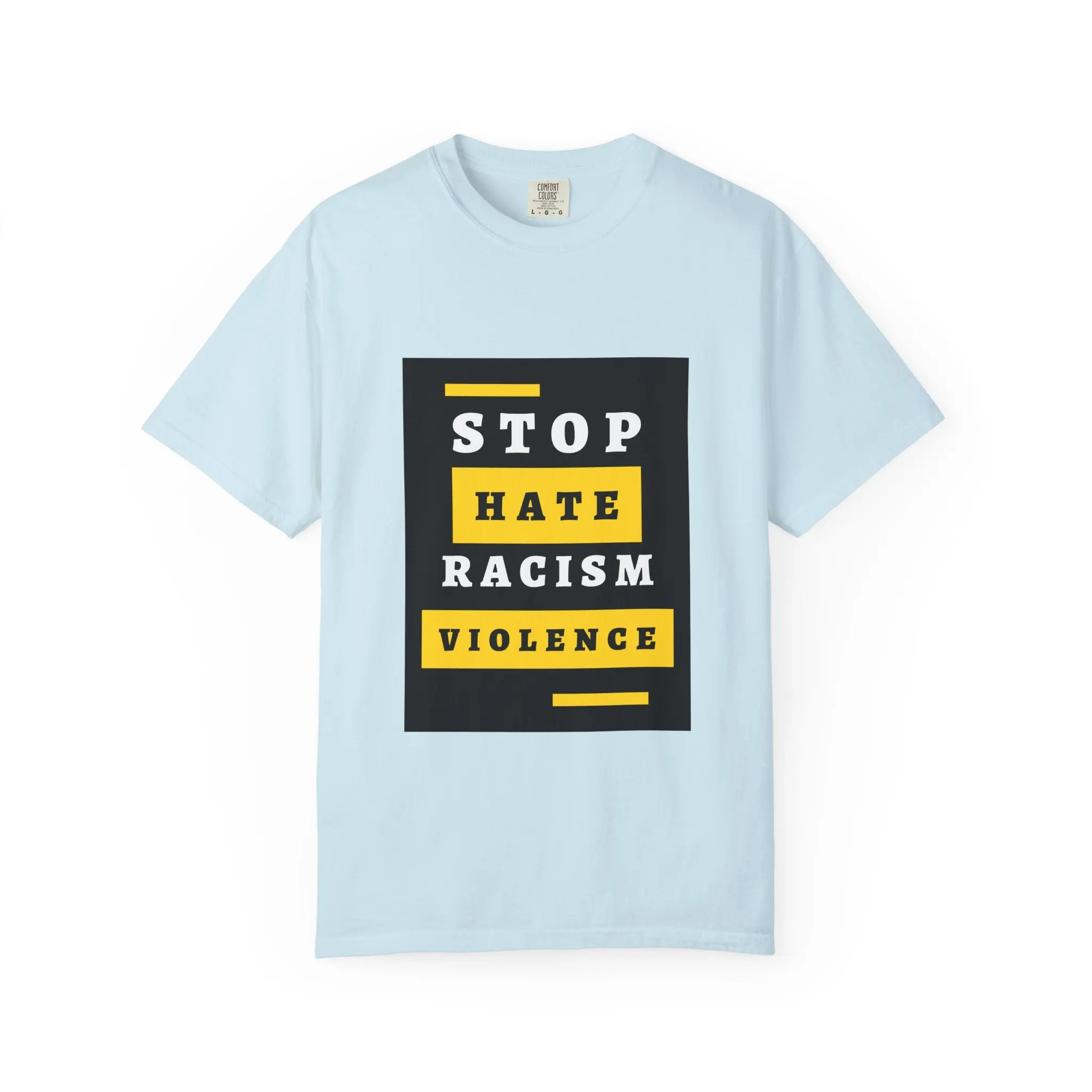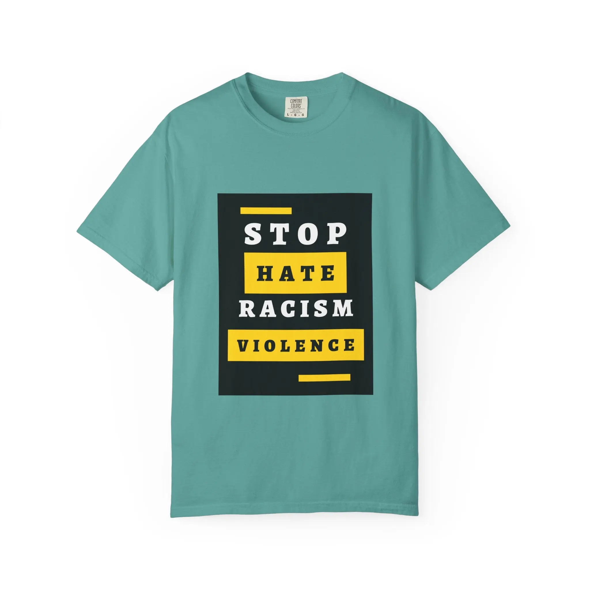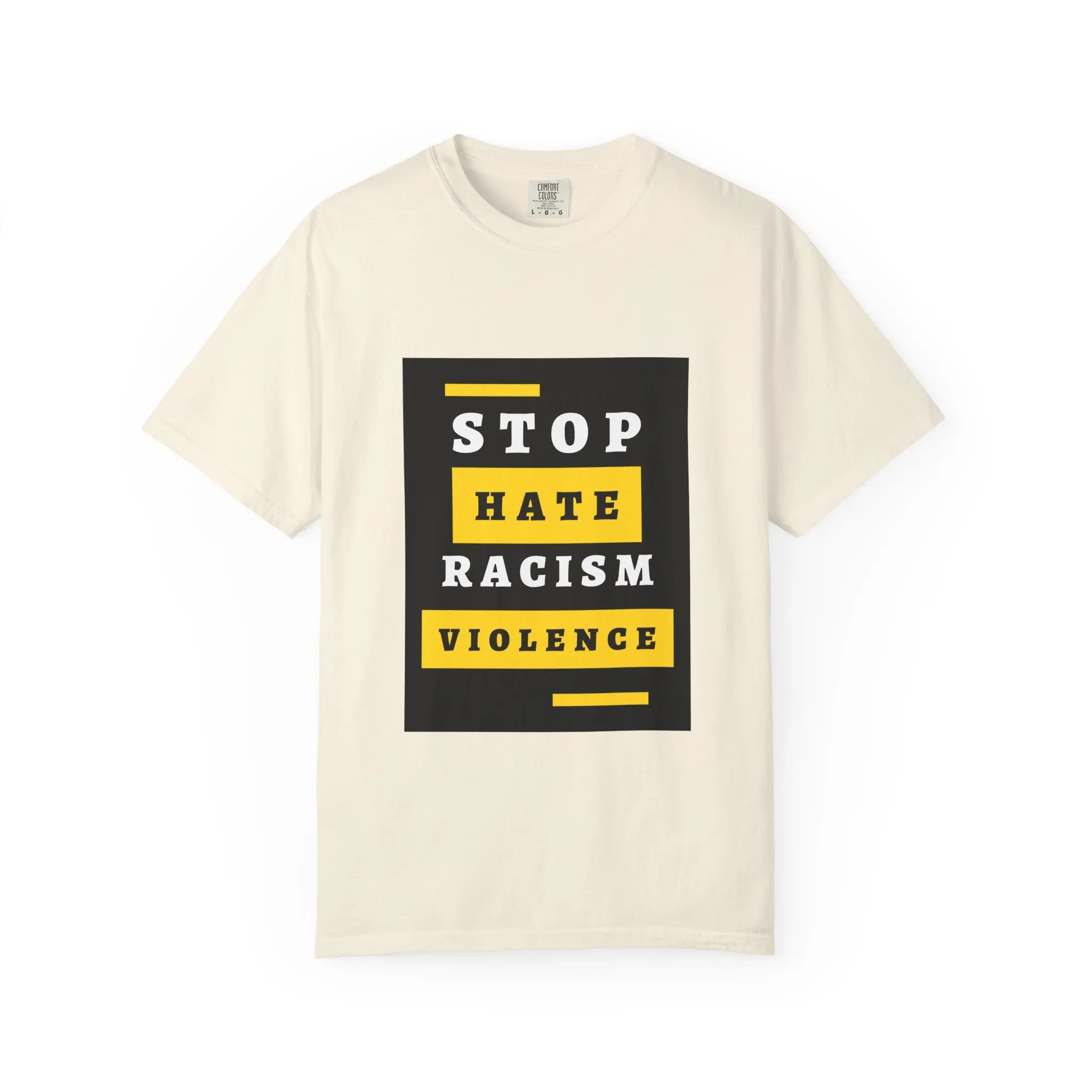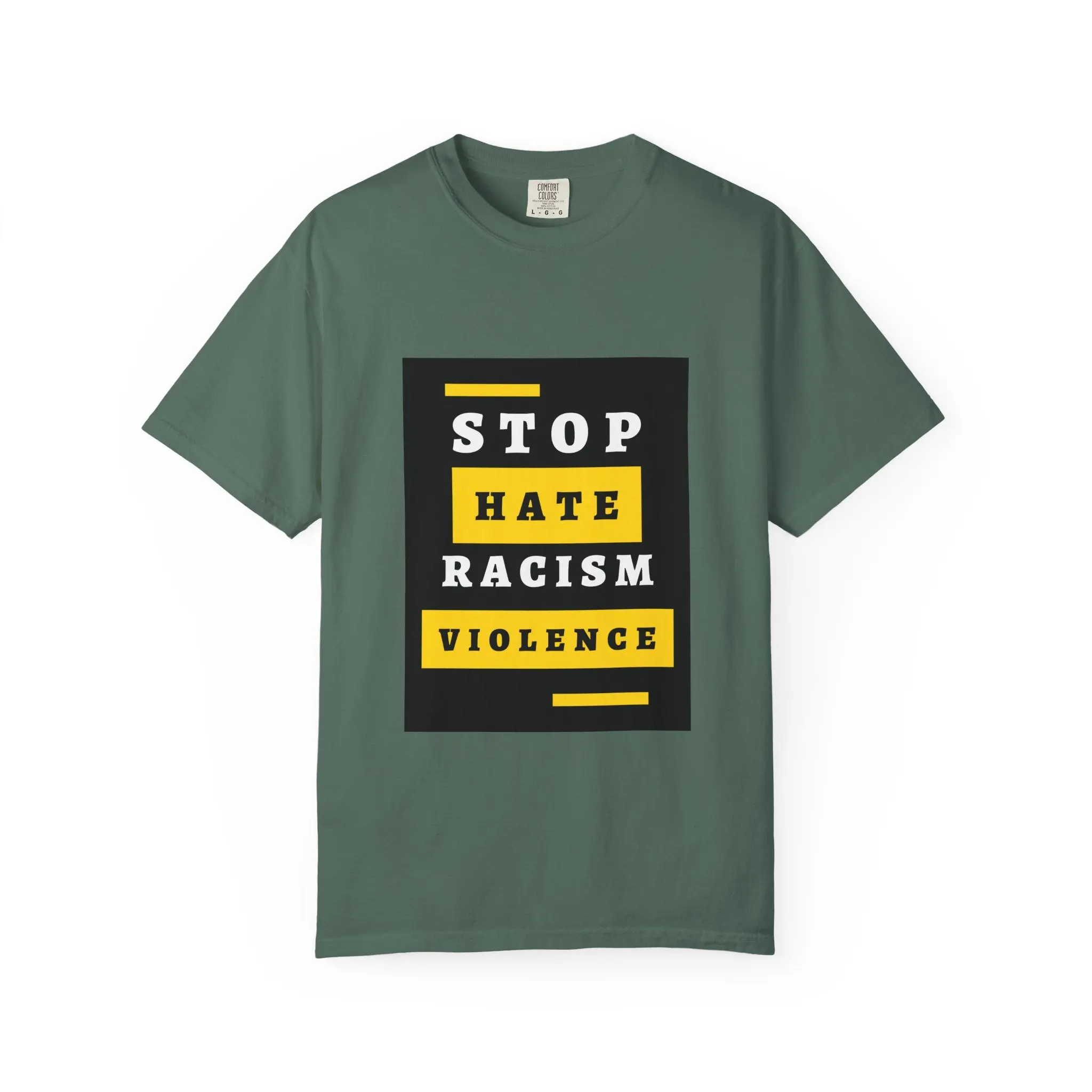 A heavyweight, garment-dyed tee that speaks up. This relaxed-fit shirt pairs a bold, block-style message with soft, lived-in cotton—so wearing your values feels comfortable and confident. The graphic’s high-contrast layout and impactful wording create a clear statement without shouting, blending into everyday outfits from city streets to neighborhood events. It sits casually over jeans or layered under a jacket, becoming part of slow, intentional days centered on community and solidarity.