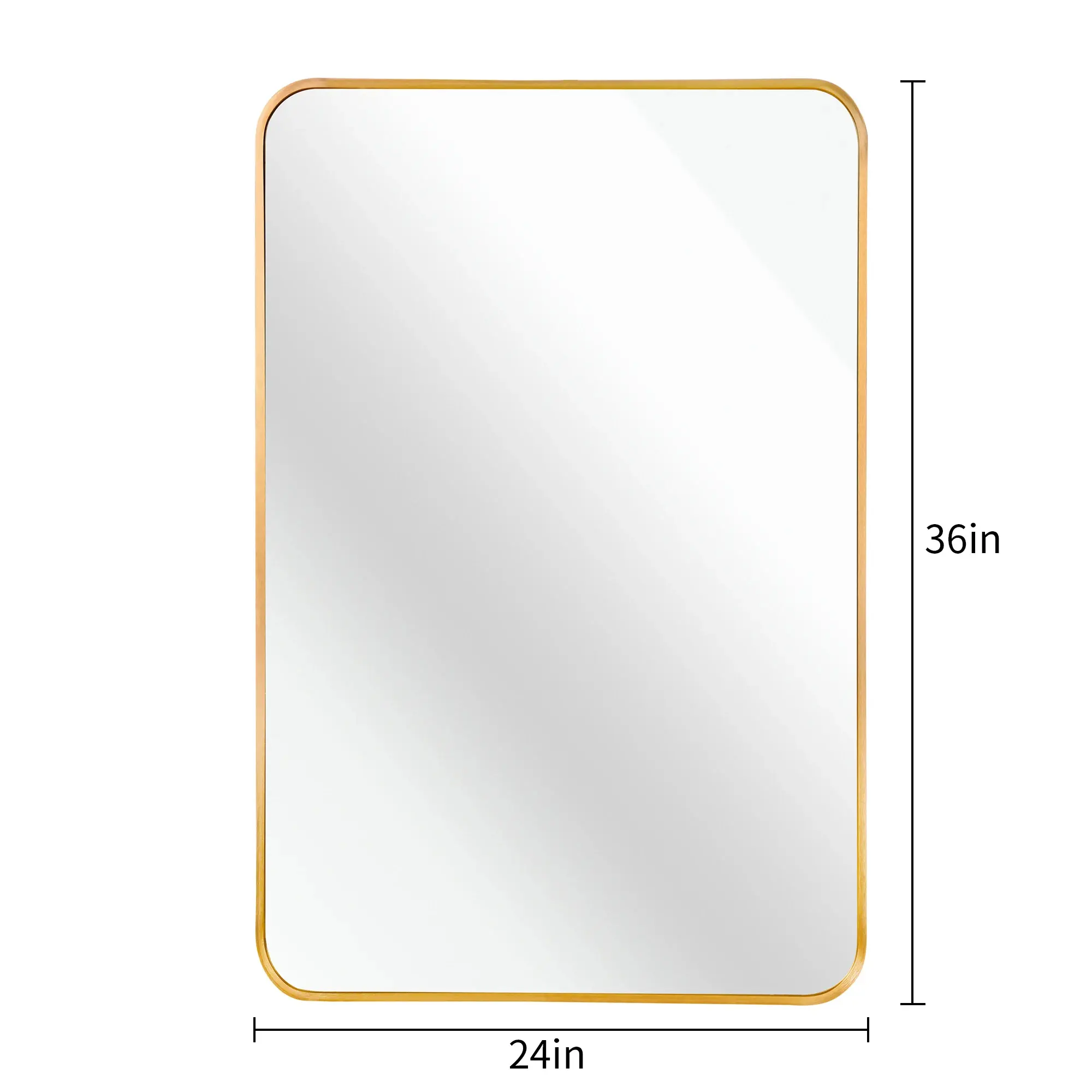 24x36 Inch Simple Gold Metal Framed Rectangular Bathroom Mirror W2203P183175 Wall Decorative for Living Room Made of Aluminium