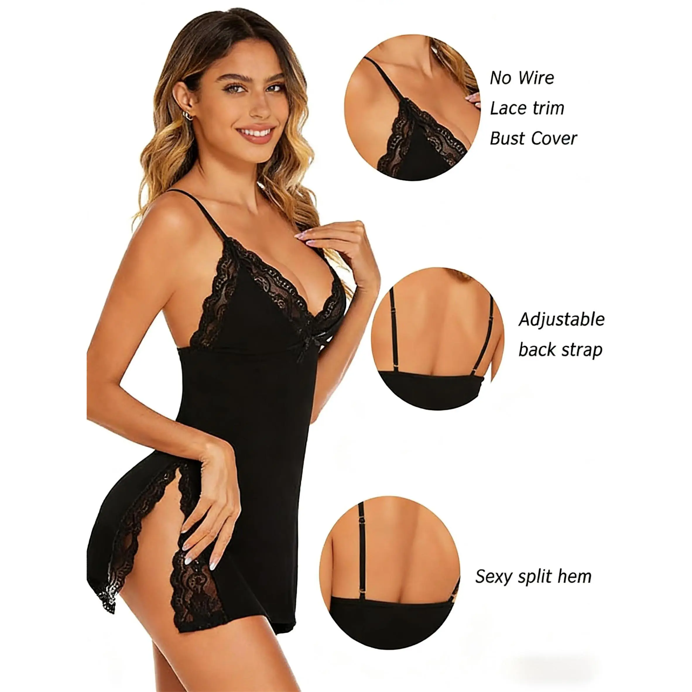 - Feminine lace trimming along the neckline for a touch of elegance.
