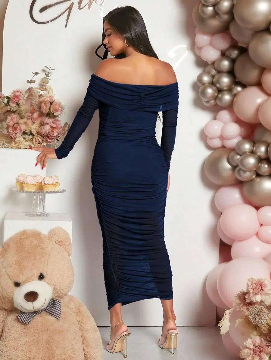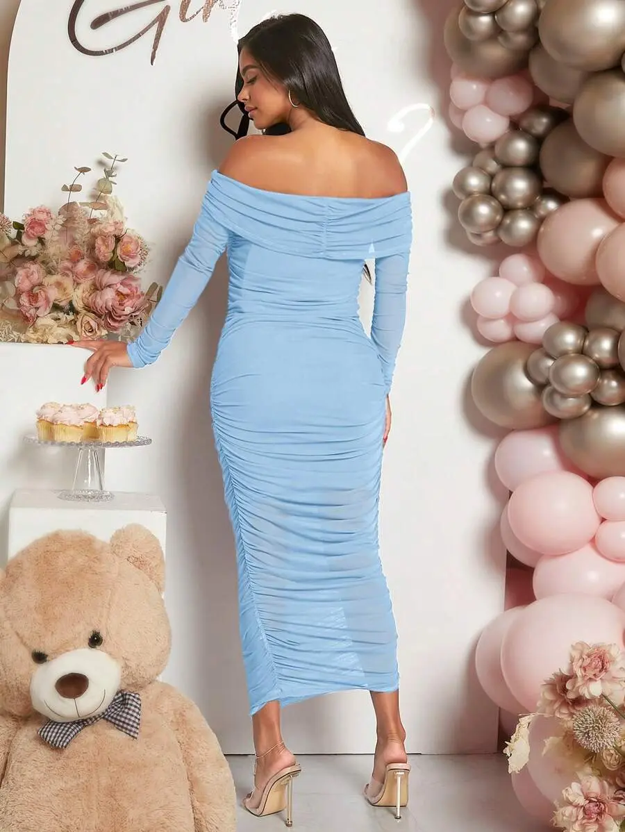 ADORIA Gathered Midriff Bodycon Silhouette Baby Belly Shower French Girl