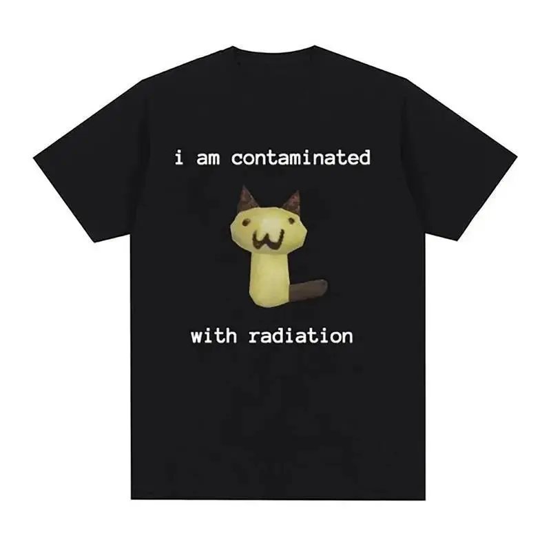 I Am Contaminated with Radiation Funny Cat Meme T-shirt Short Sleeve Men Women Vintage T Shirt MaleCotton T Shirts