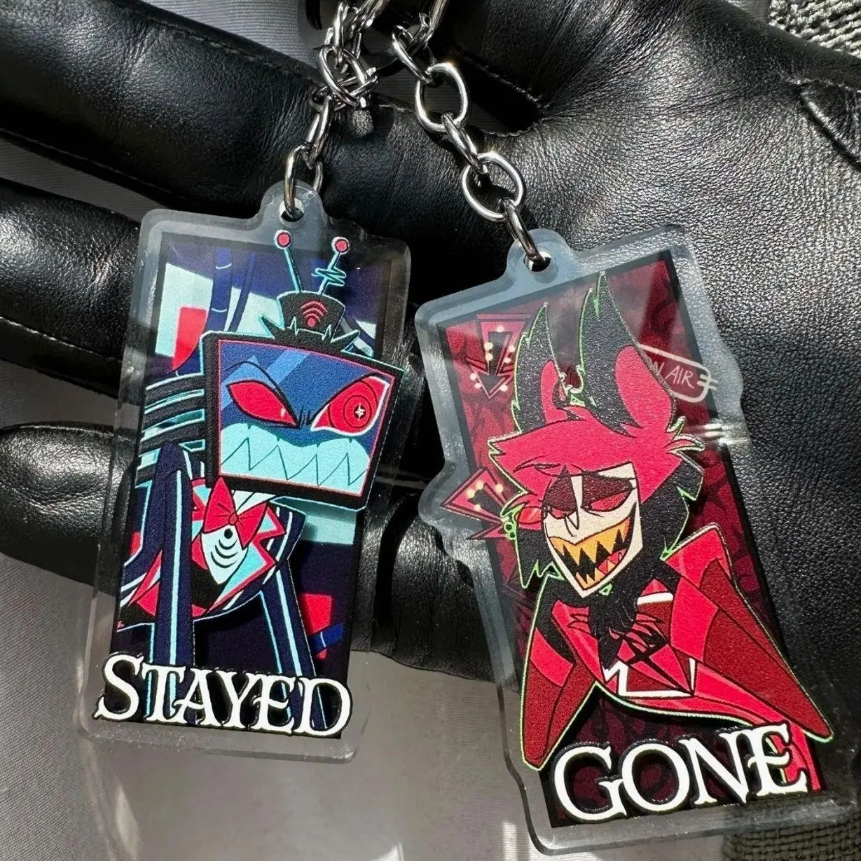 5. Hazbin Hotel Stayed Gone Vox and Alastor 3D Keychain Set