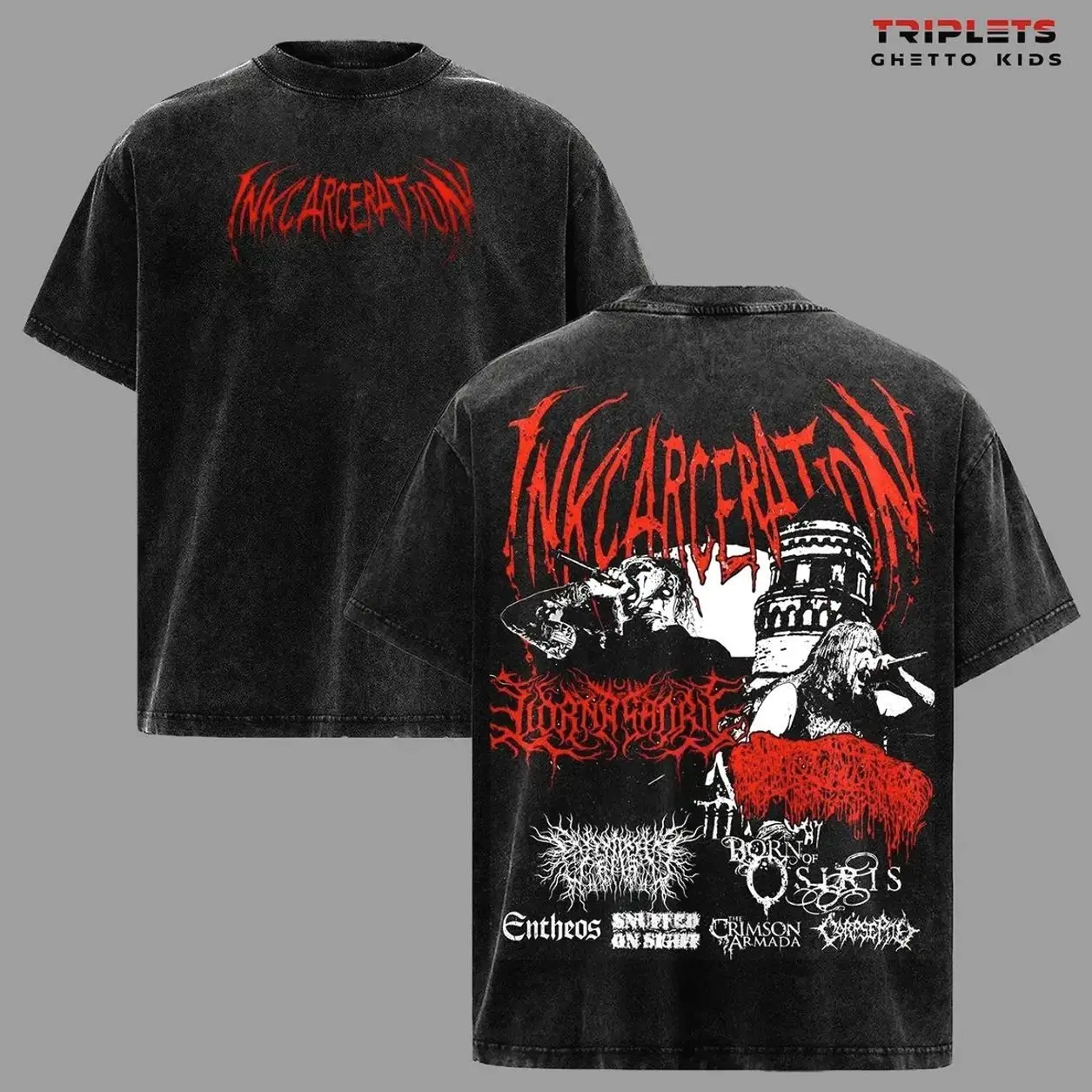 PeelingFlesh Incarceration Tour Vintage Washed T-Shirt, Deathcore Band Graphic Tee, Heavy Metal Streetwear Oversized Acid Wash Shirt, Unisex Rock Merch USA Style LV2