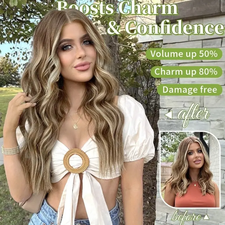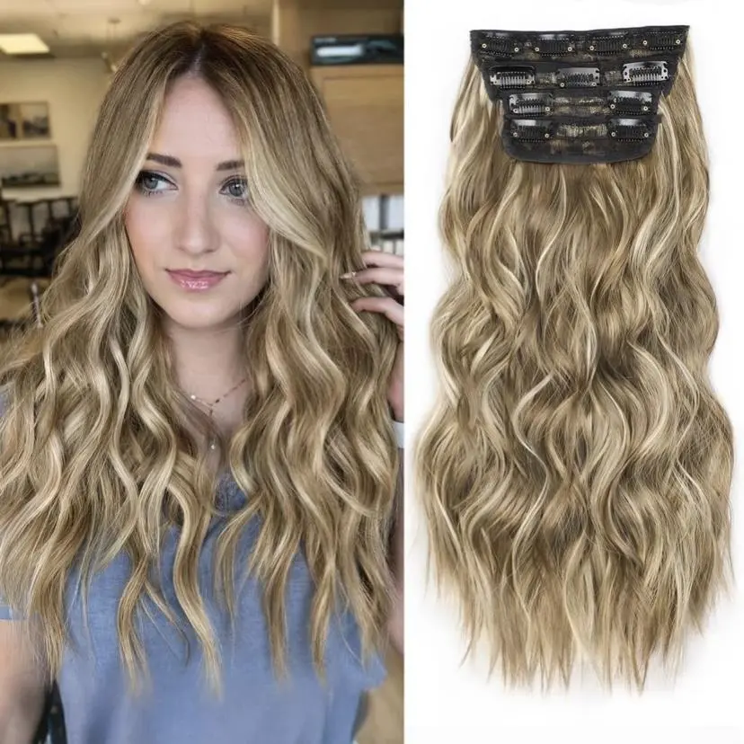 [Extension Specifications] This set includes four pieces, featuring 4, 3, 2, and 2 clips on each piece, respectively. Available lengths include 16 inches, 20 inches, and 24 inches, with corresponding weights of 225g, 255g, and 295g. You can select the size that best suits your personal preferences. [Material & Benefits] Our clip-in hair extensions are crafted from high-quality, heat-resistant synthetic fibers that closely mimic the look and feel of real human hair. The hair is soft, smooth, and free of any harsh chemical odors; it blends seamlessly with your natural hair, creating a flawless, natural-looking finish once worn. [Easy Application] These clip-in extensions are incredibly easy to use—even if you have never worn wigs or extensions before, you can effortlessly add length and color to your hair in just a few simple steps. Simply section your hair, slide the extension piece into the desired position, and gently snap the clips shut to secure it in place. [Instant Length] The beauty of these clip-in extensions lies in their ability to help you effortlessly create a variety of stylish and glamorous hairstyles without the need for expensive professional salon visits. They instantly provide the visual effect of long hair, allowing you to add several inches to your hair length in just a matter of minutes. Note: All product images are actual photos of the physical items. Due to variations in photography techniques, monitor settings, lighting, and environmental factors, there may be slight color discrepancies between the actual product and the images shown; please refer to the actual product received as the final standard.