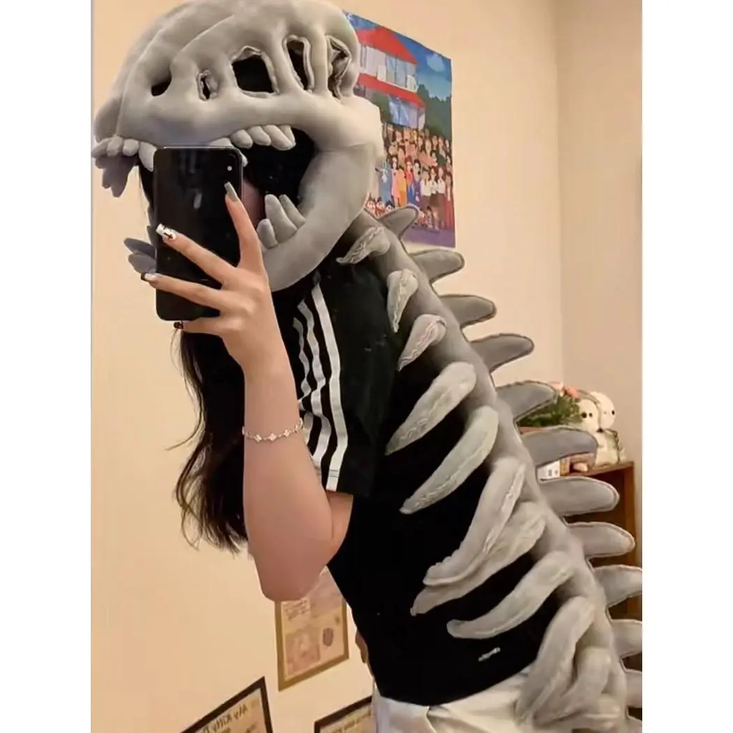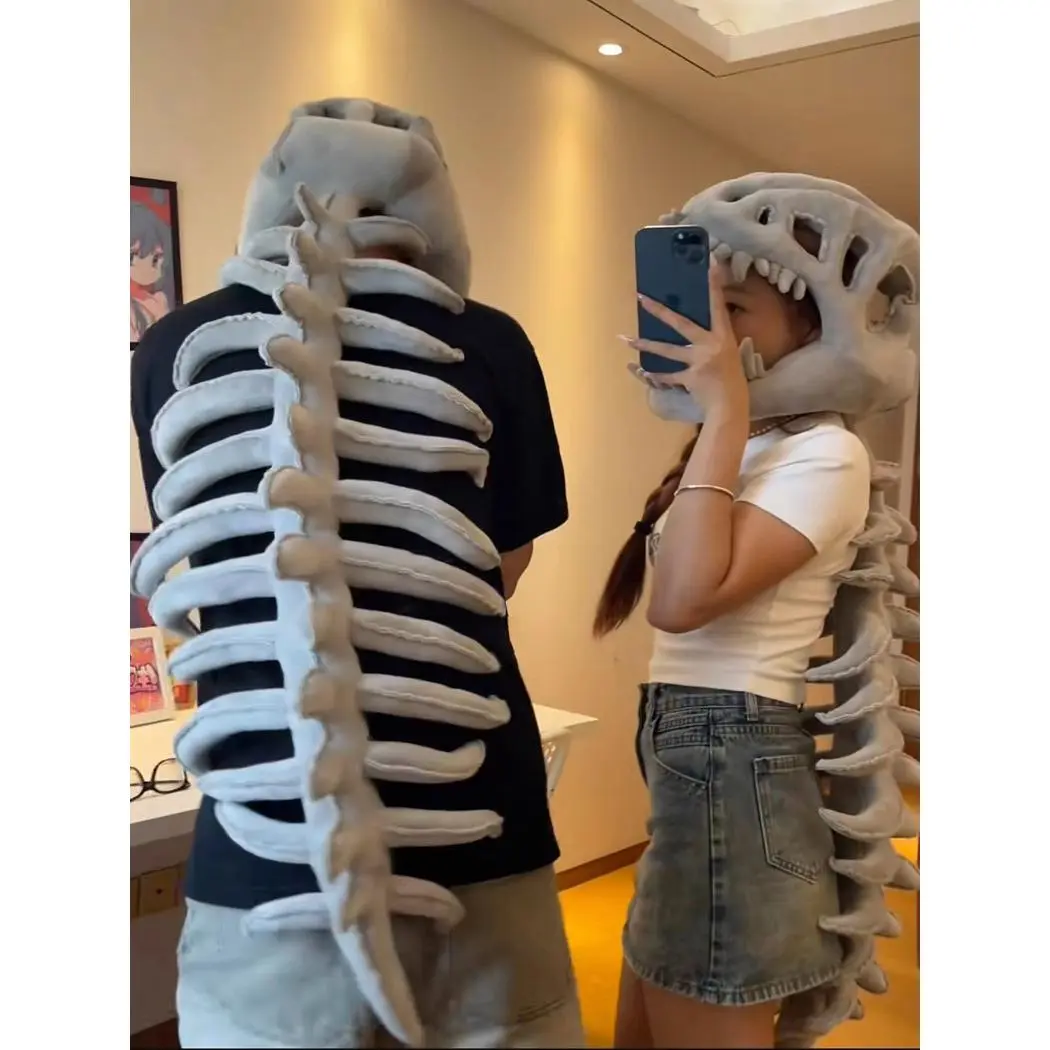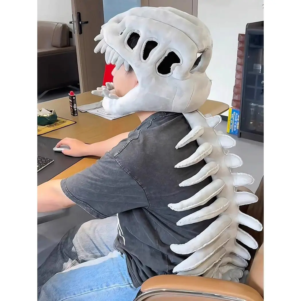 Chinese Dinosaur Skeleton Headgear Plush Toy Hat Prop Cosplay Children Adult Doll Birthday Gift