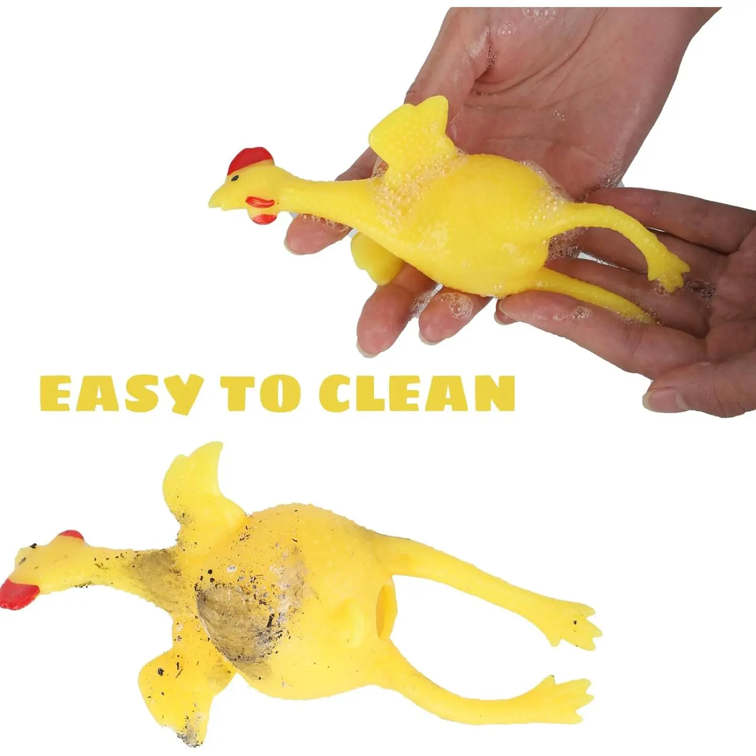 Material:Soft rubber and the liquid is water,non-toxic and feel comfortable when squeezeFunction: help you to reduce pressure, a good stress reliever, adult toy, Not suitable for under 14 years of age,There is an egg in the chicken ,when you squeeze the chicken and then an egg pops out.Length*Width(Approx):16X7.5cm(6.2X2.9inch)Package including: 1 PC (16cm long)