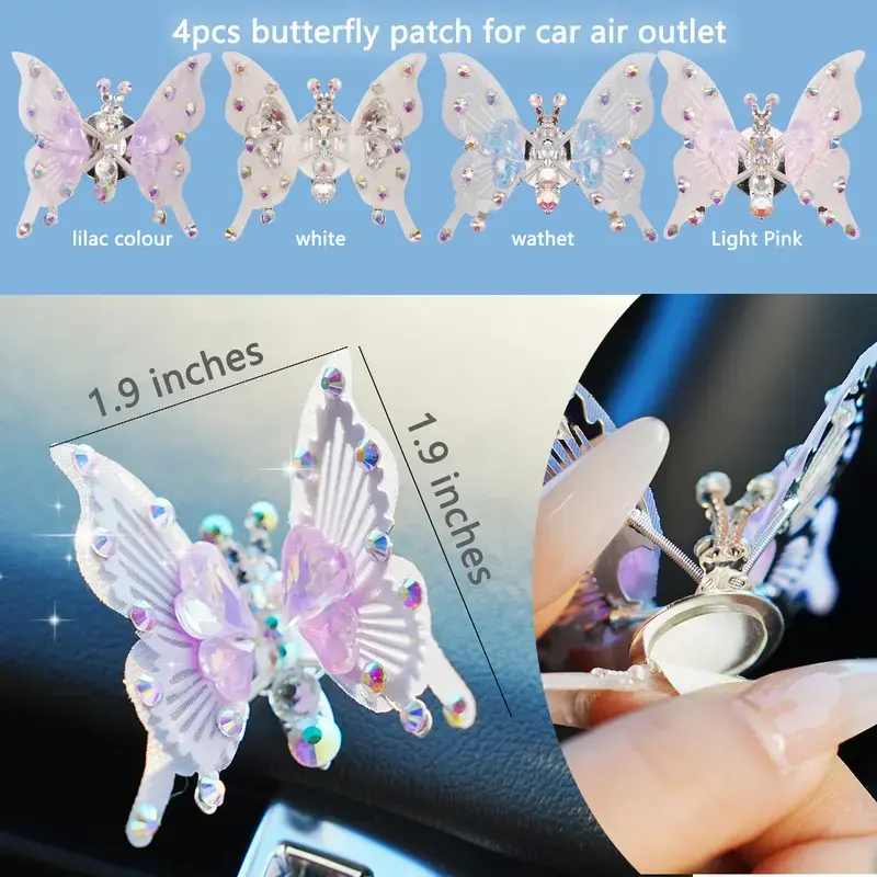 4pcs Flying butterfly decor Car accessories Home decor Wall stickers Pink butterfly Moving butterfly Purple car accessories Room decor Car ornament Car charm Car jewelry Butterfly jewelry for women Girls bedroom Decor pink room decor