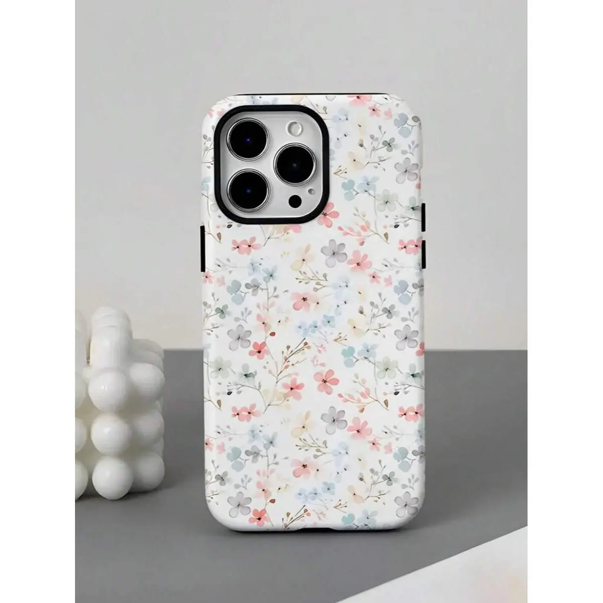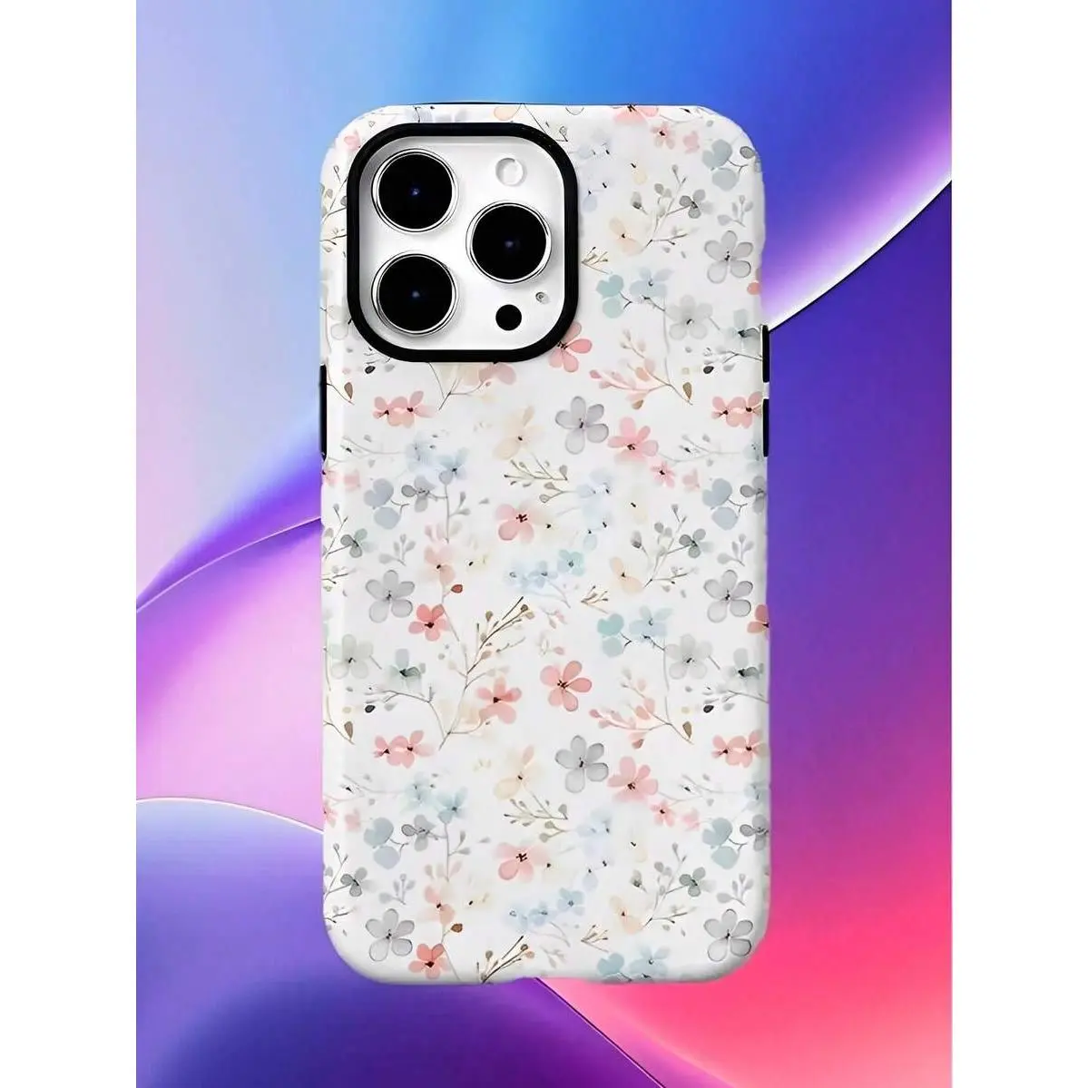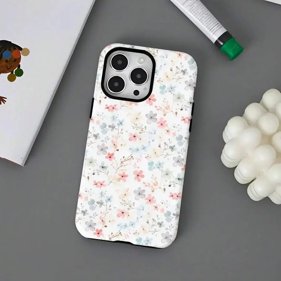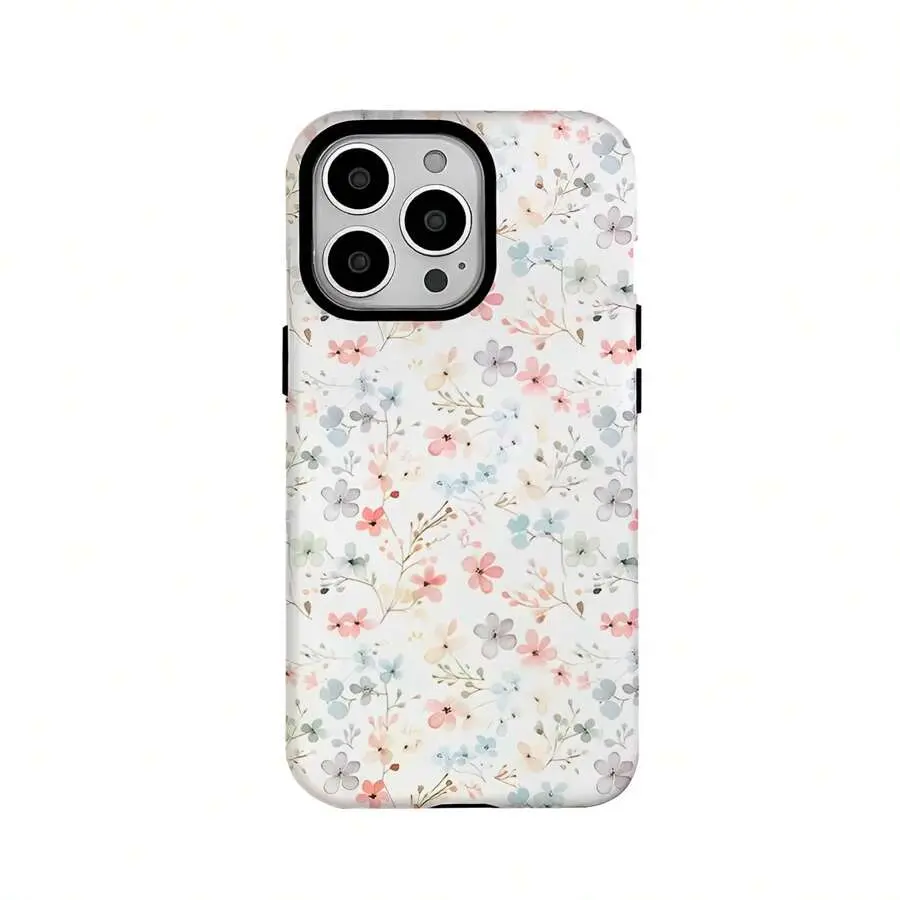 Light Pink And Light Blue Small Floral Patterns Two-In-One Texture Phone Case Suitable For Compatible With Iphone16, 15, 14, 13, 12, 11, PRO MAX,PLUS,As Well As , Galaxy Compatible with Samsung Galaxy S25