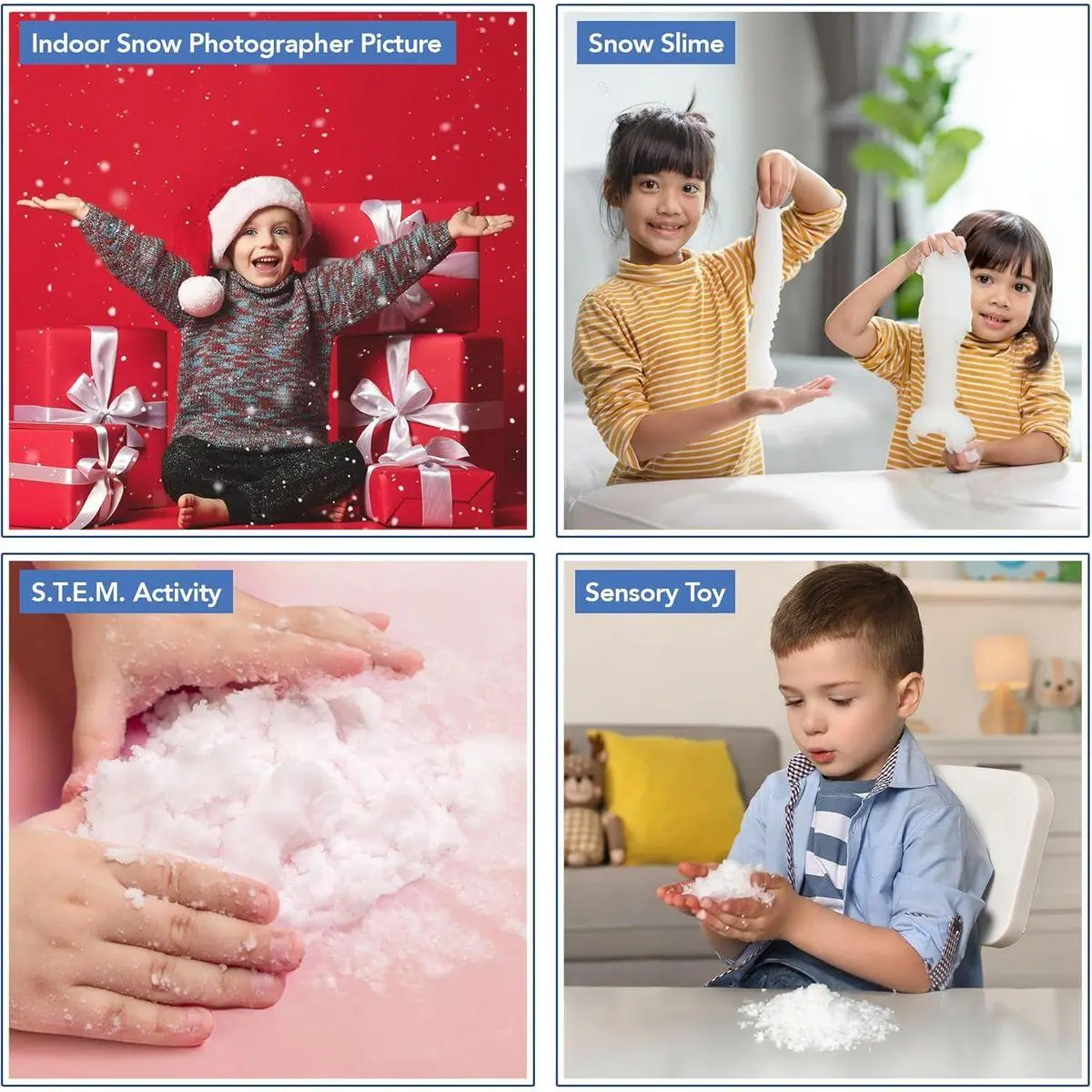 SAFE & ECO-FRIENDLY: Made of flame-retardant, non-toxic, and eco-friendly polymer, this magic snow powder is perfect for STEM slime activities. Safe for children over 3 years old, it’s an ideal stocking stuffer, gift, or party favor.