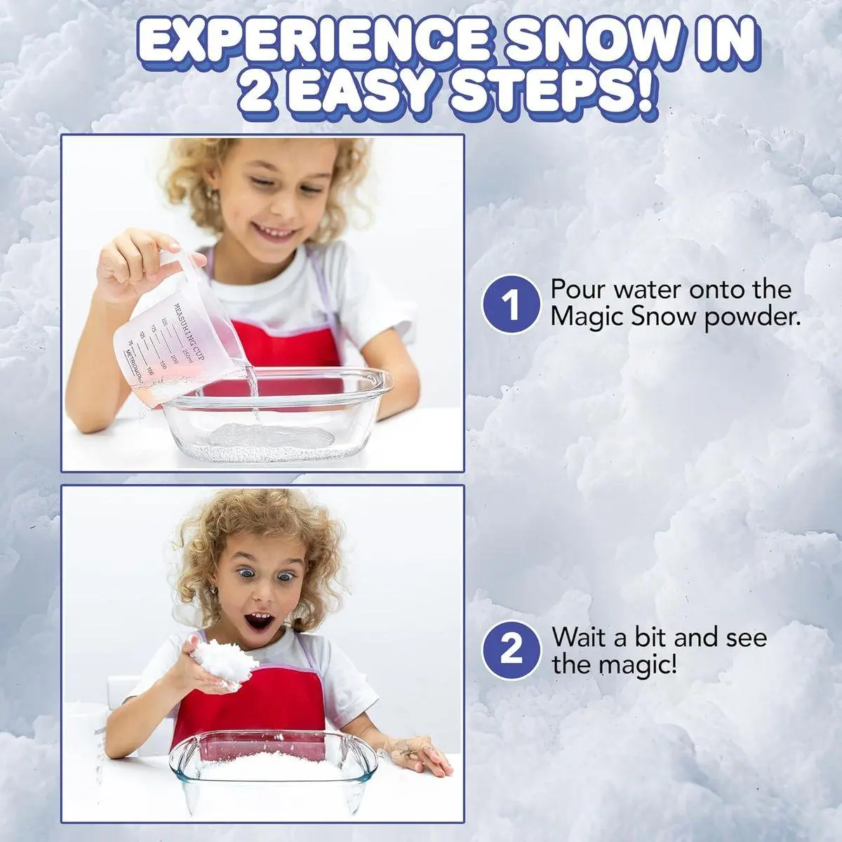 INSTANT SNOW CREATION: Magic snow powder for kids that creates 4 gallons of snow in seconds. Just add water (snow: water = 1:20) and watch it expand into fluffy, light snow without any stirring, providing instant fun and excitement.