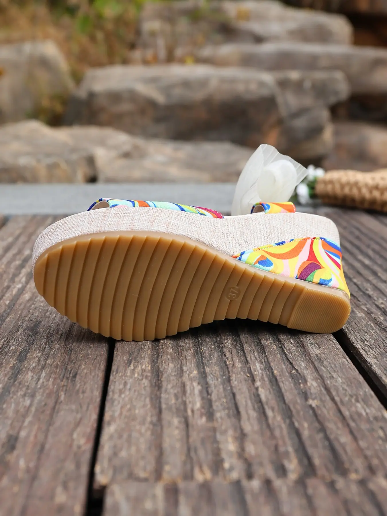 Women's Multi-Color Bow Flat Sandals, One-Piece Slip-On, PU Leather Upper, Rubber Sole, Boho Style, Perfect for Jeans