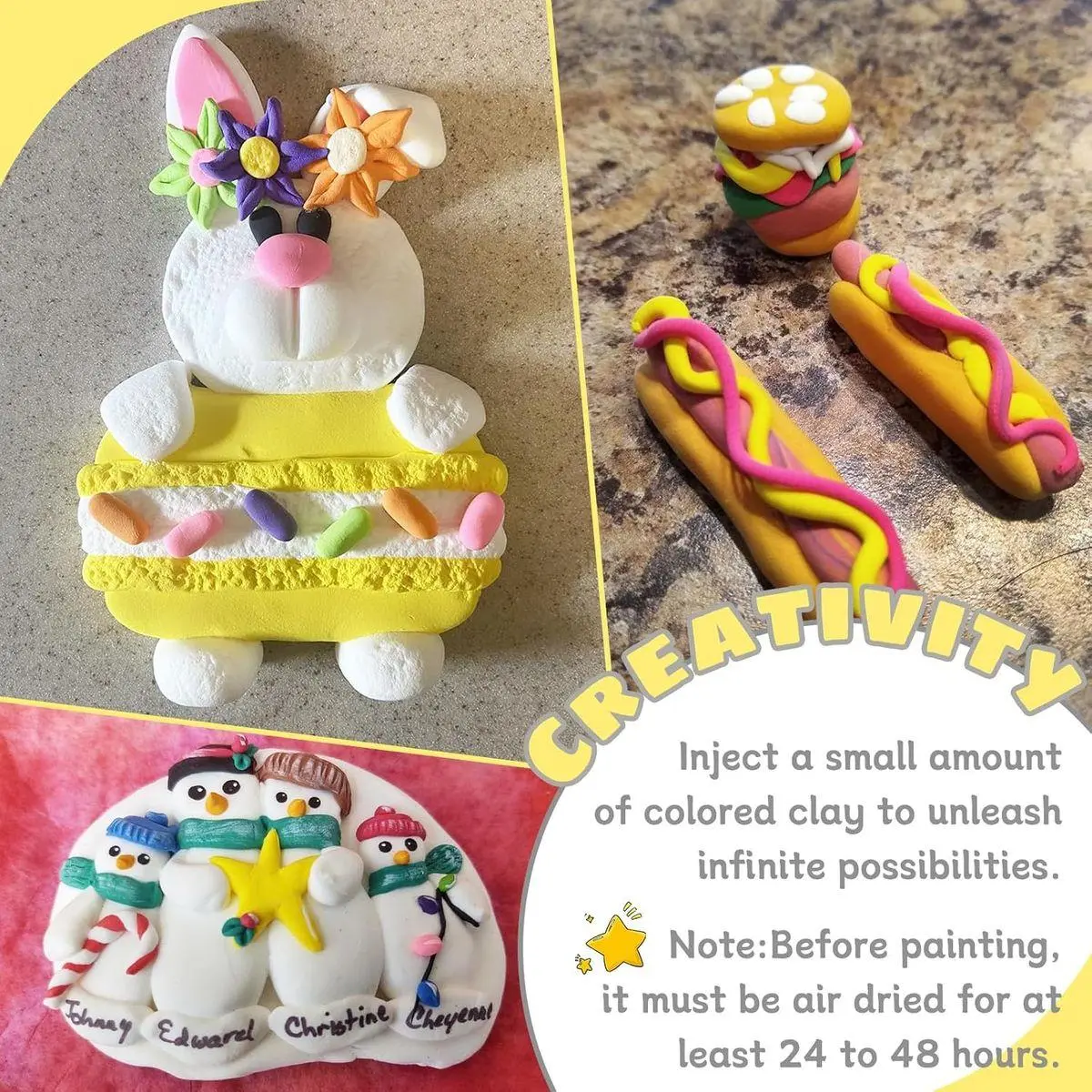 【Air Dry】:White soft modeling clays do not require an oven or kiln!Make them into your favorite works of art and let them air dry naturally.Note:Before painting,it must be air dried for at least 24 to 48 hours.