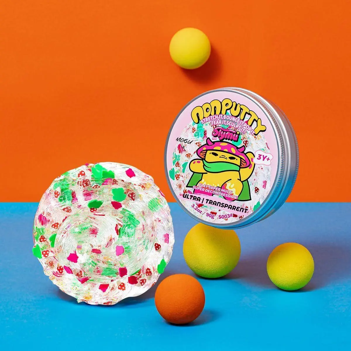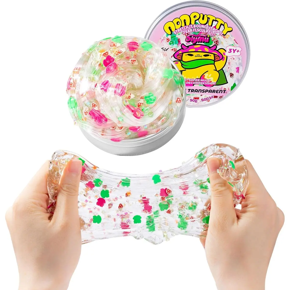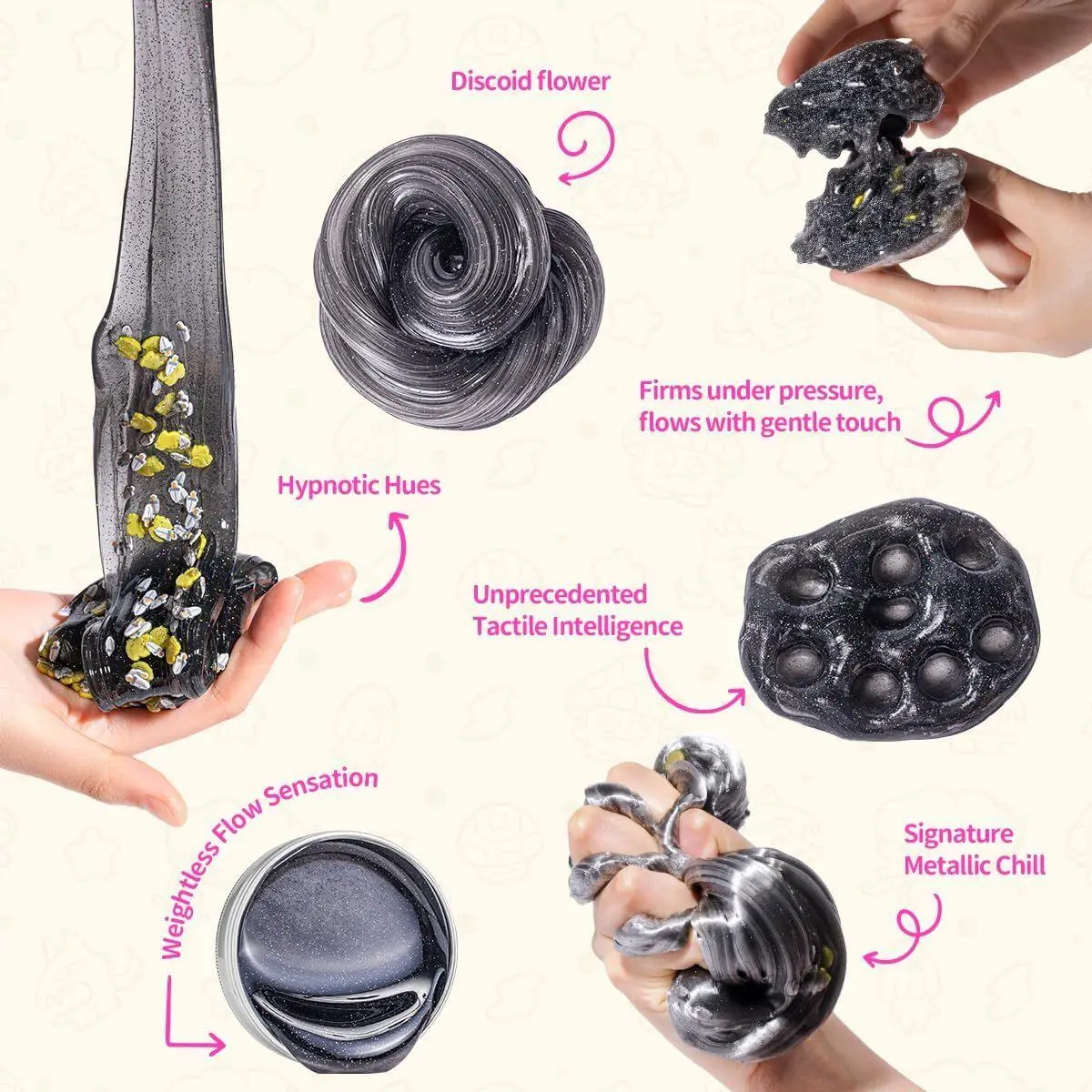 Super transparent color, pure and natural,refreshing one's heart and mind After multiple stretches, it can change color and present a metallic silver luster Non-Newtonian fluid, the hammer cannot be smashed, and it is stretched gently, which is especially suitable for training creative thinking over the age of 3 years old Metallic Stretch, Crispy Snap Texture, ASMR Sound Contains 3.2 oz Slymu putty and mixed shiny accessories,Non-Toxic Slime, ASTM Certifie