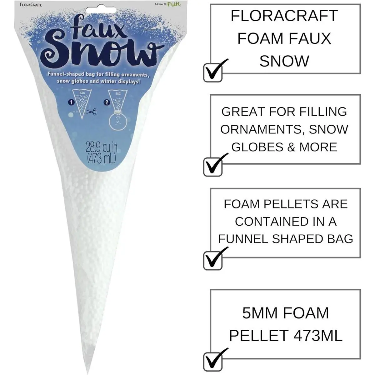Craft-Ready Packaging: The funnel-shaped bag allows for easy and mess-free placement of tiny foam balls for crafts into bottles, globes, or containers.
