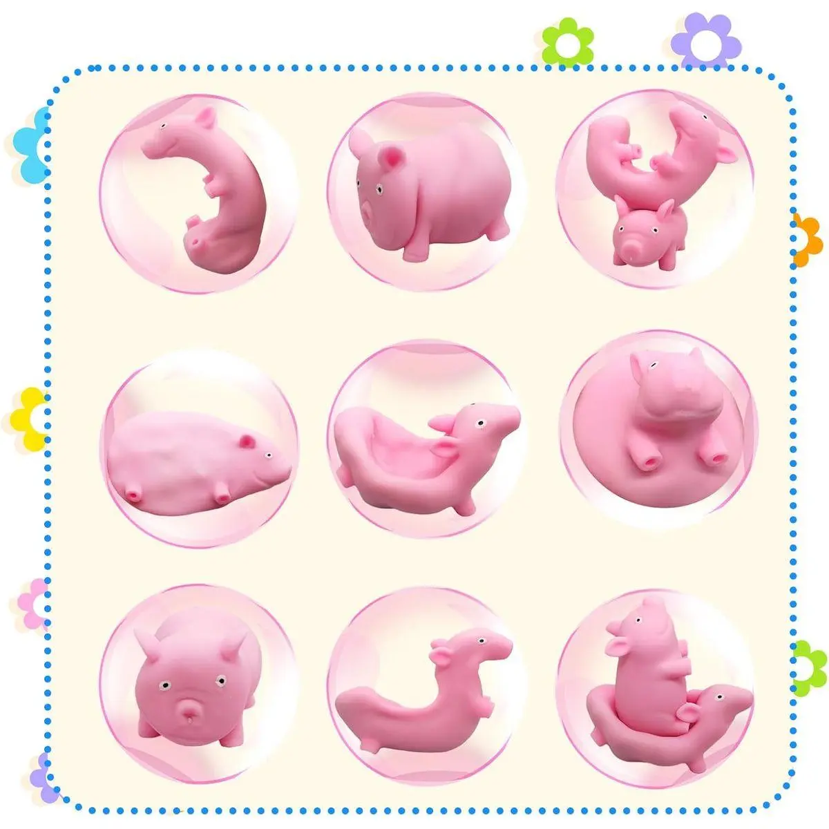 [Perfect Size] Our pig stress relief toys are designed just right. Each pig toy measures about 1.6*1.8*3.9 inches and weighs about 0.3 pounds. It is easy to carry. Pig toys for kids are convenient for children to hold or put in their hands at any time. Inside the small bag, squishy fidget toys are sure to become your child's best friends.