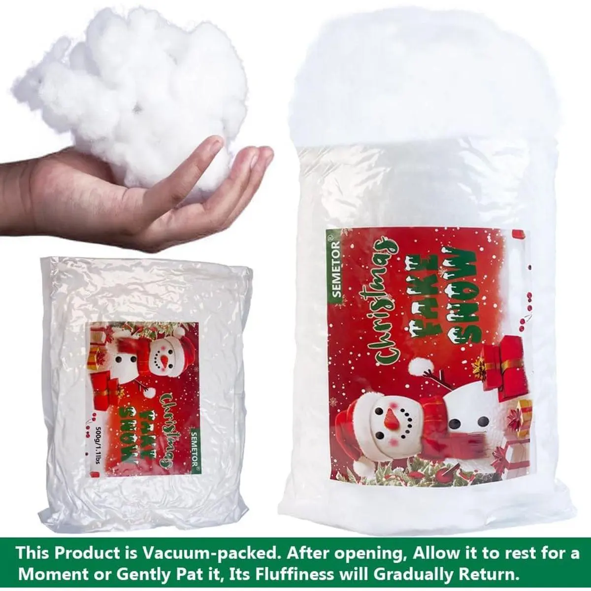 【Multiple Sizes Available, Fit Different Needs】: Available in 17.6 oz/500 g/1.1 lb packaging. This product is equally suited for intricate handcrafting and spot decoration, as well as large-scale installations (such as entire mantelpieces or expansive Christmas village scenes). Whether for home décor or commercial displays, this is your ideal choice for artificial snow.