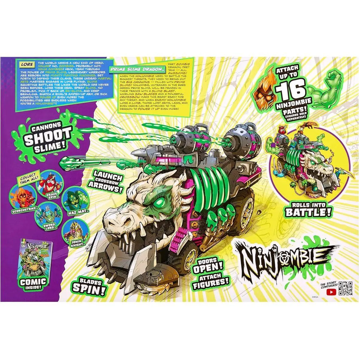 Next-Level Play - Turn every skirmish into a splatter-fest by combining action figures, slime, and vehicles for the full Ninjombie experience.