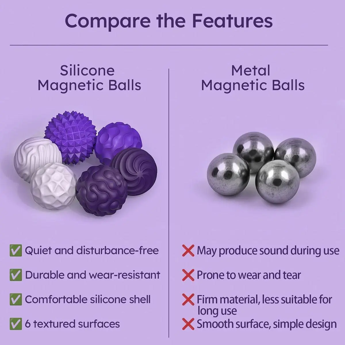 【Quiet and Silent Play】Our silicone Magnetic balls are completely silent, whether you're in the office, classrooms, library, or meeting room, gently rubbing, rolling, or connecting them makes no annoying noise, allowing you to release stress and focus in quiet environments.