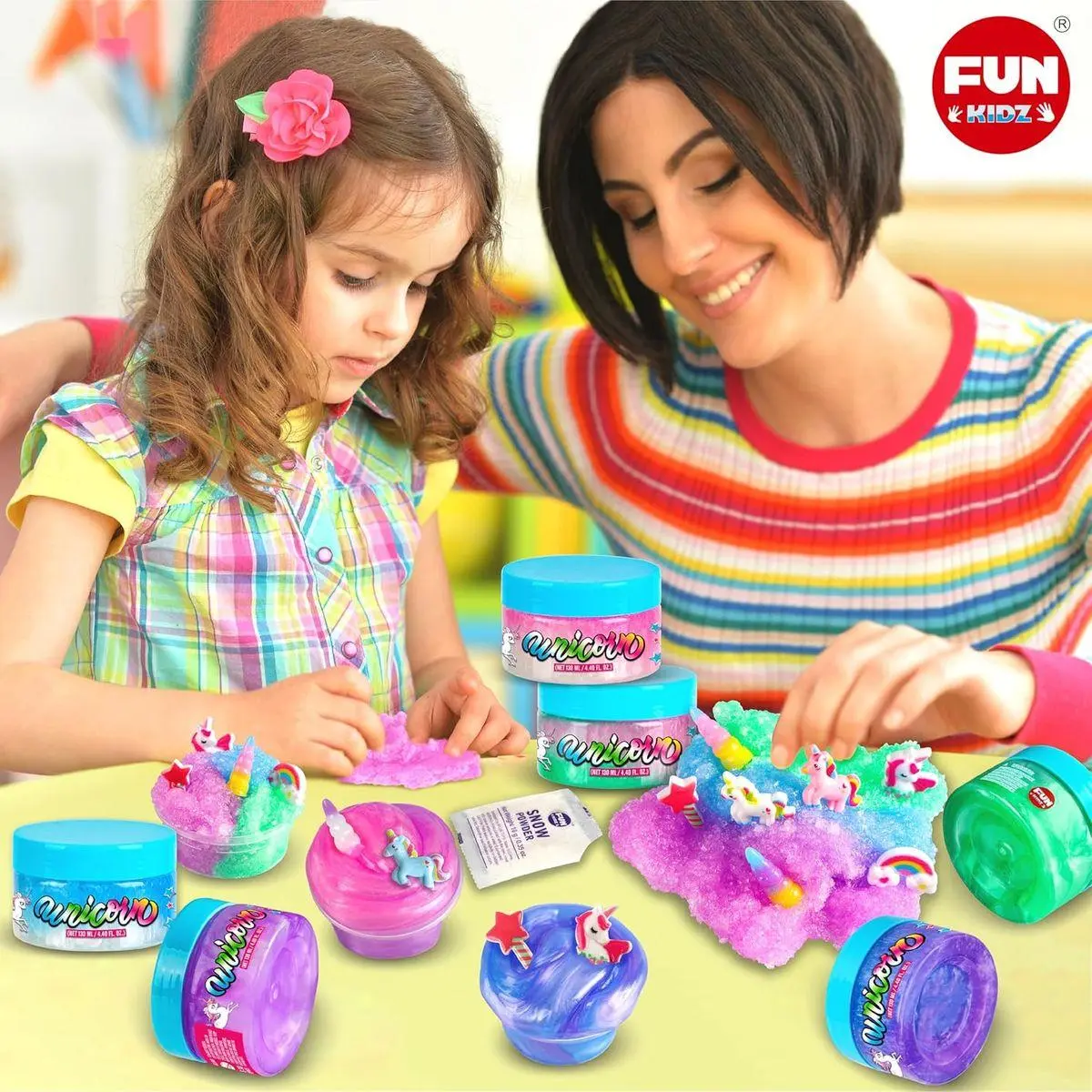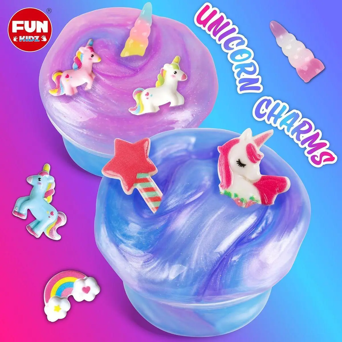 [UNICORN SLIME PACK FOR GIRLS]- Easy make various slime with our several cute unicorn and rainbow charms. FUNKIDZ unicorn slime kit bring more fun with the fascinating colors. Realize girls unicorn dream.