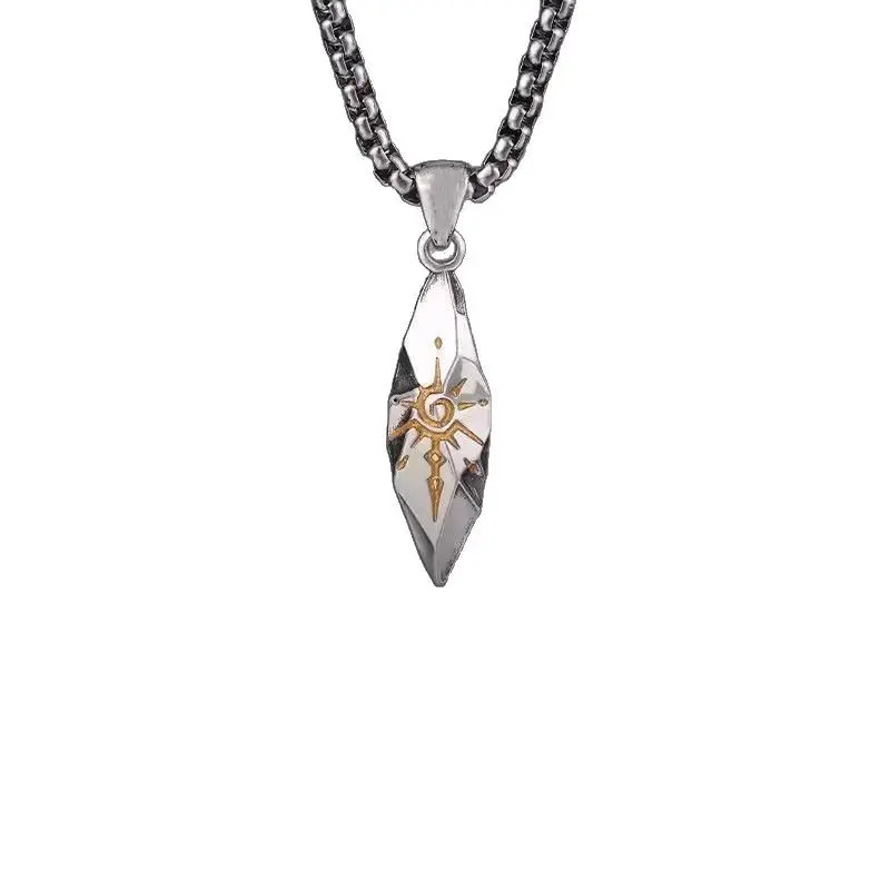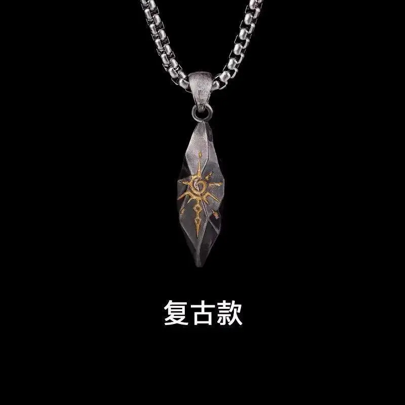 Vintage Wish Stone Men Necklace Trendy Meteorite Pendant Neutral Stainless Steel Sweater Chain Jewelry