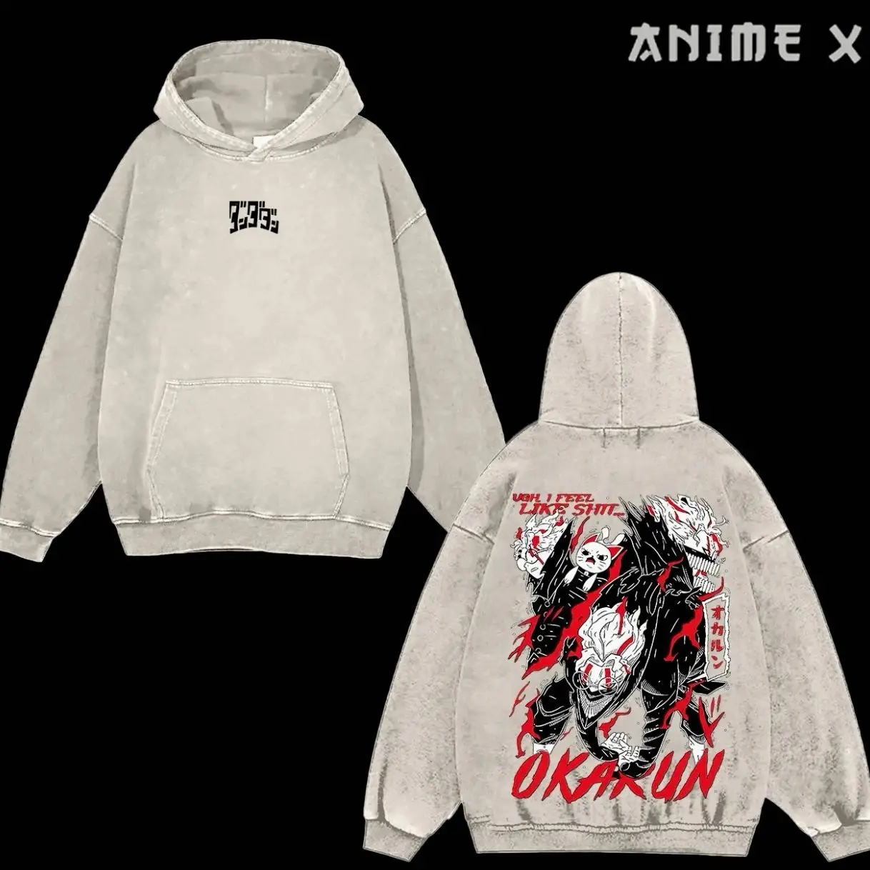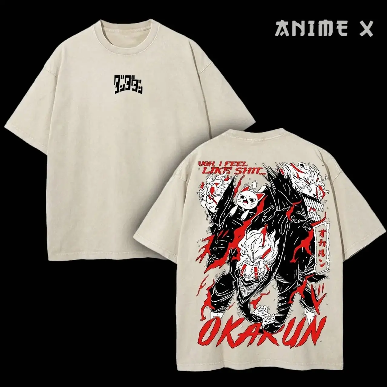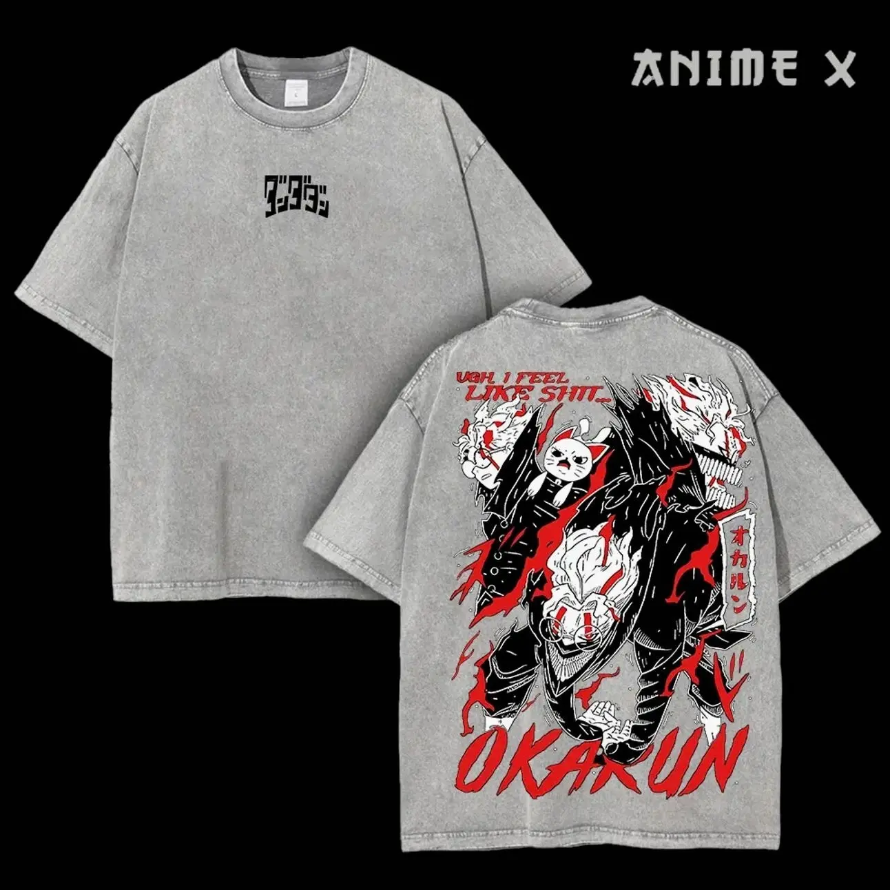 Retro Vintage Limited Turbo Baba Okarun - Dandadan Anime Double Printed Oversized Washed Tee Unisex Oversize Anime Manga Acid Washed Lightweight Cotton T-Shirt, Hoodies & Sweater Wash Gift For Anime Fan, Anime Lover 8JI