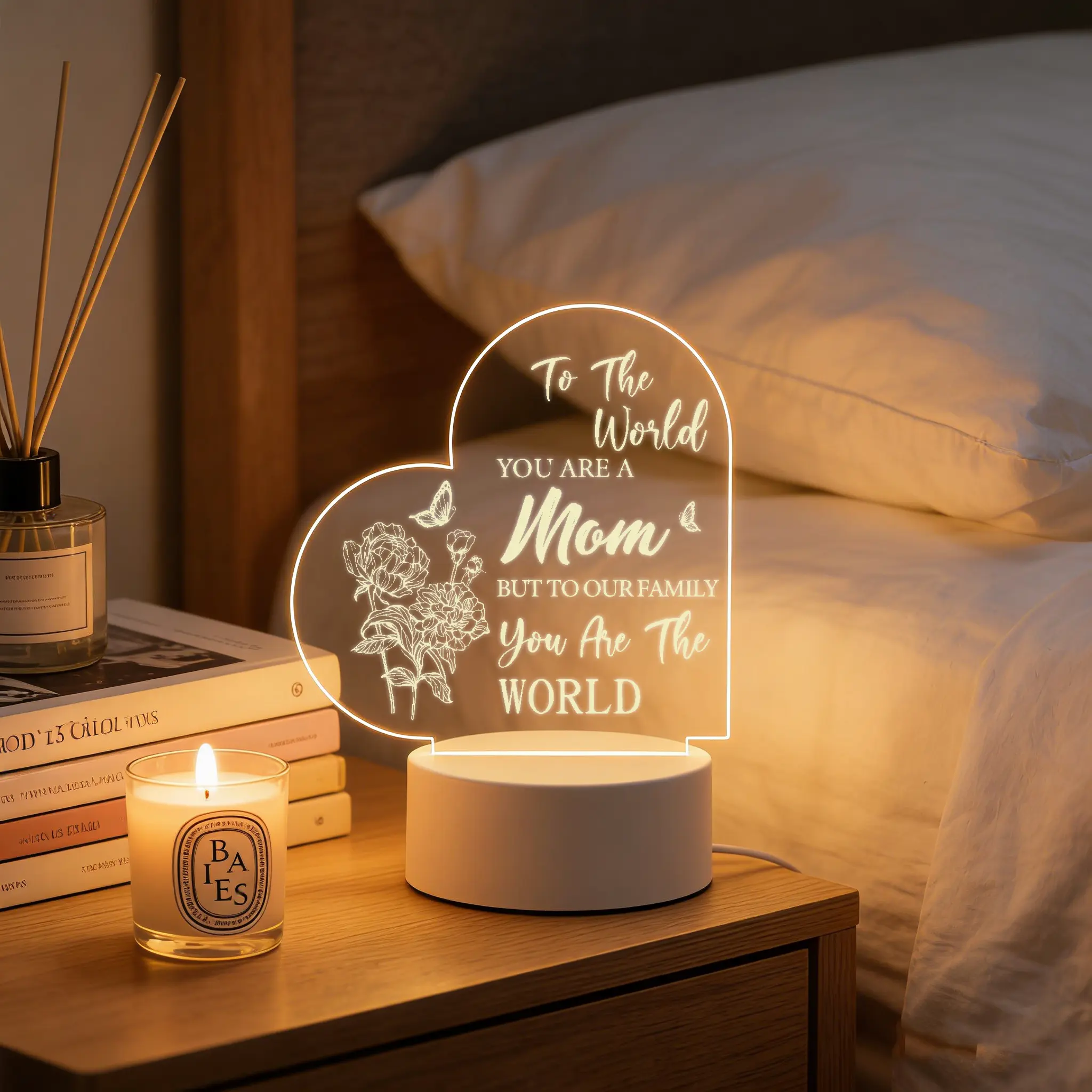 ✨ To The World You Are A Mom Heart 2D Acrylic LED Night Light ✨
