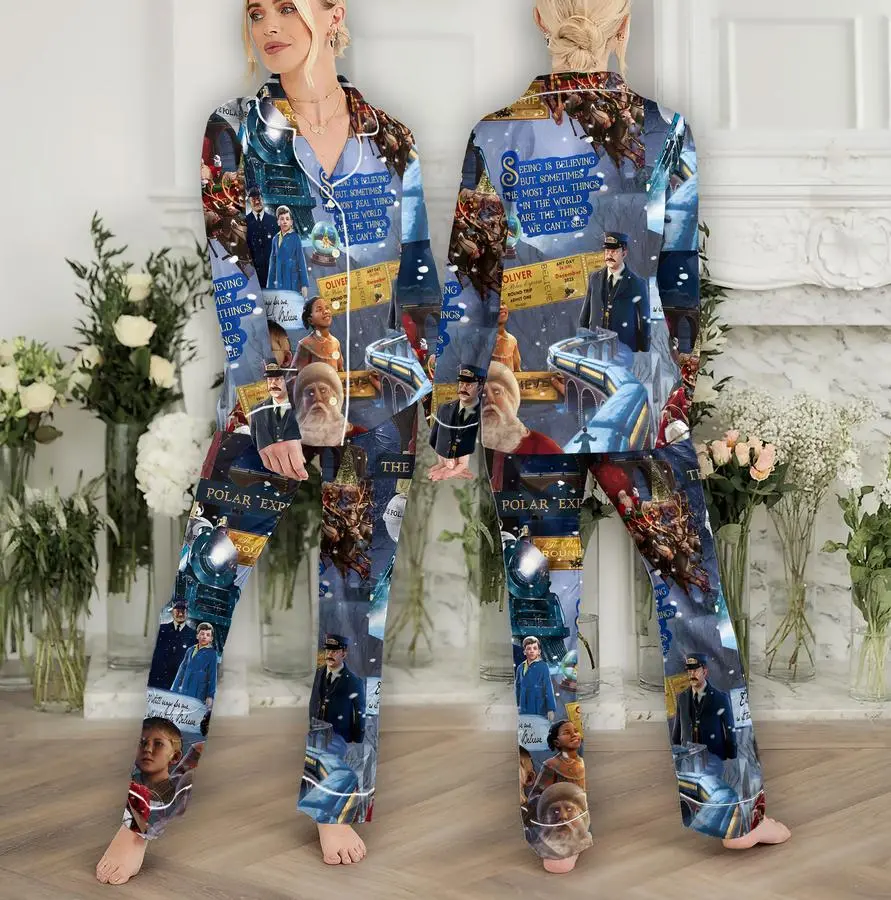 Polar Express themed Kid & Aldult pajamas sleepwear, cozy holiday PJ set for kids and adults alike
