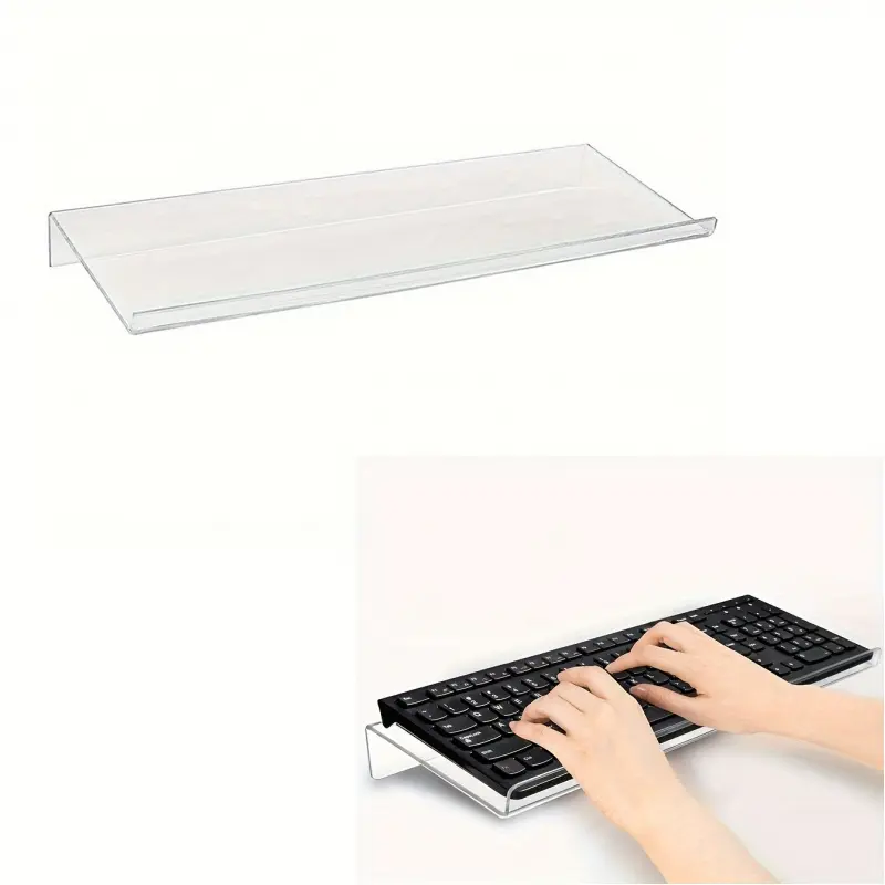 1-piece inclined PC keyboard stand made of high-toughness organic material, shatterproof and durable. The ergonomic tilted design ensures comfortable use, suitable for offices, homes and schools for easy height adjustment and storage.