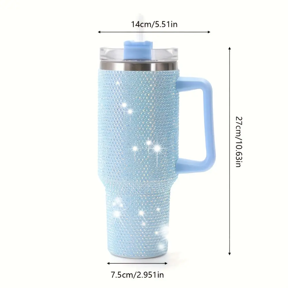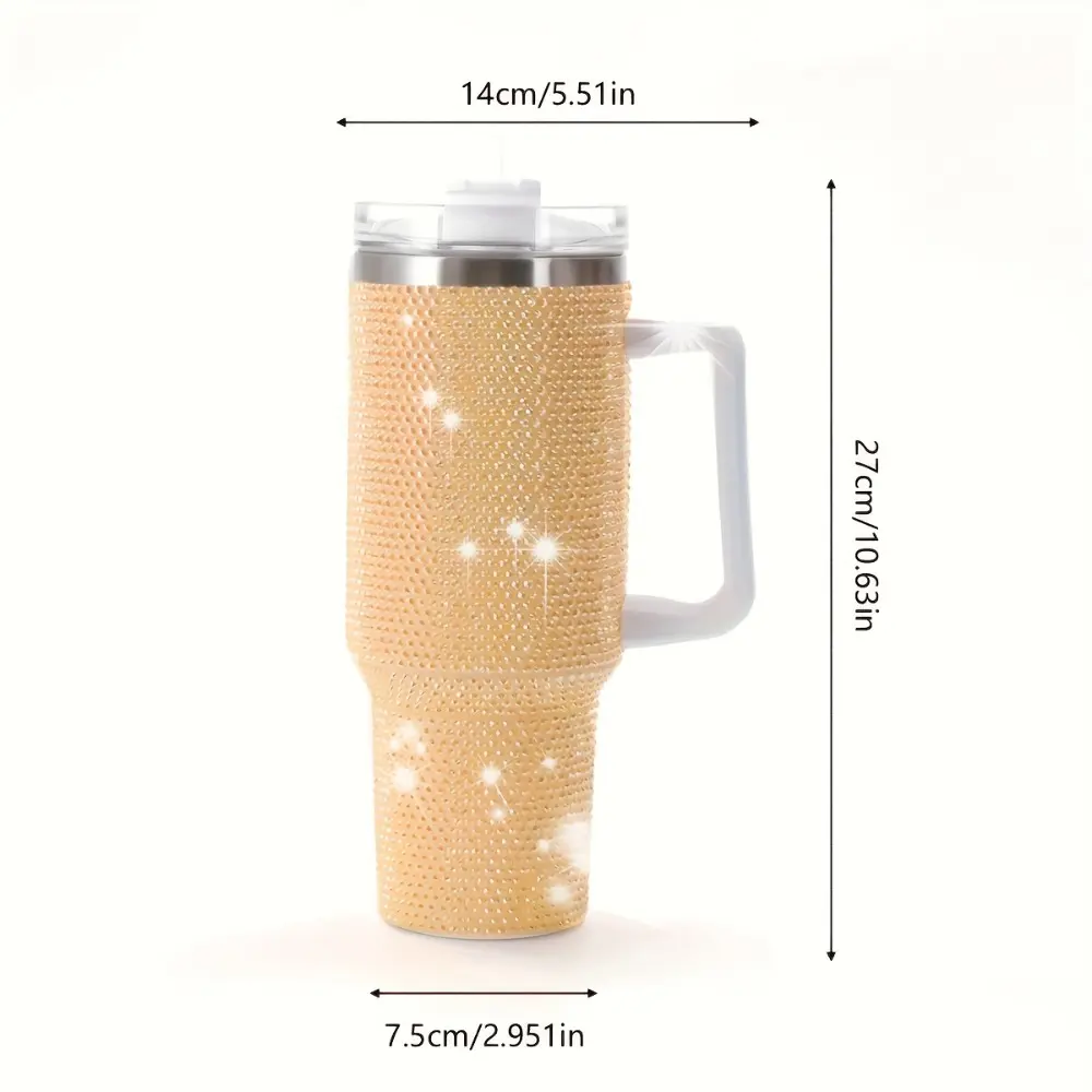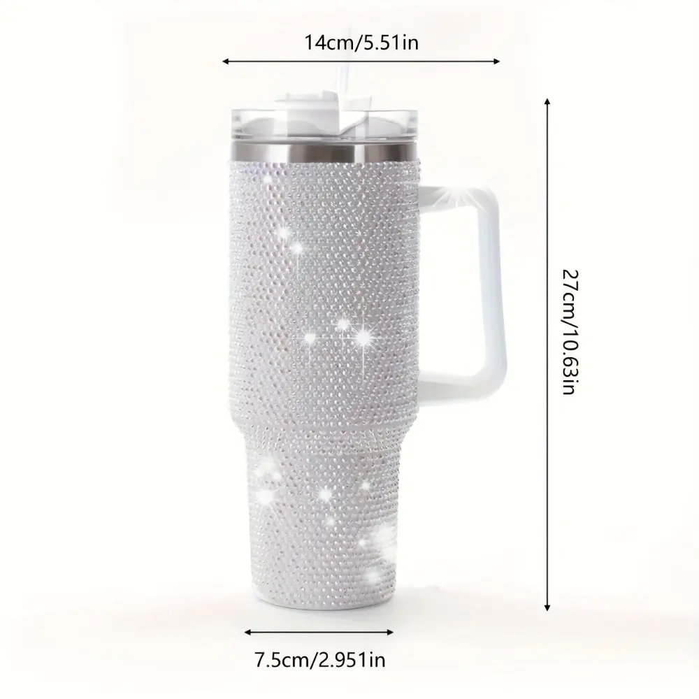 40oz Rhinestone Stainless Steel Insulated Tumbler - Premium Travel Mug for Hot And Cold Drinks - Durable, Reusable, Hand Wash Only, No Electricity Needed, Multipurpose, And Sparkling Diamond Flag Series Design, Birthday Christmas Gifts
