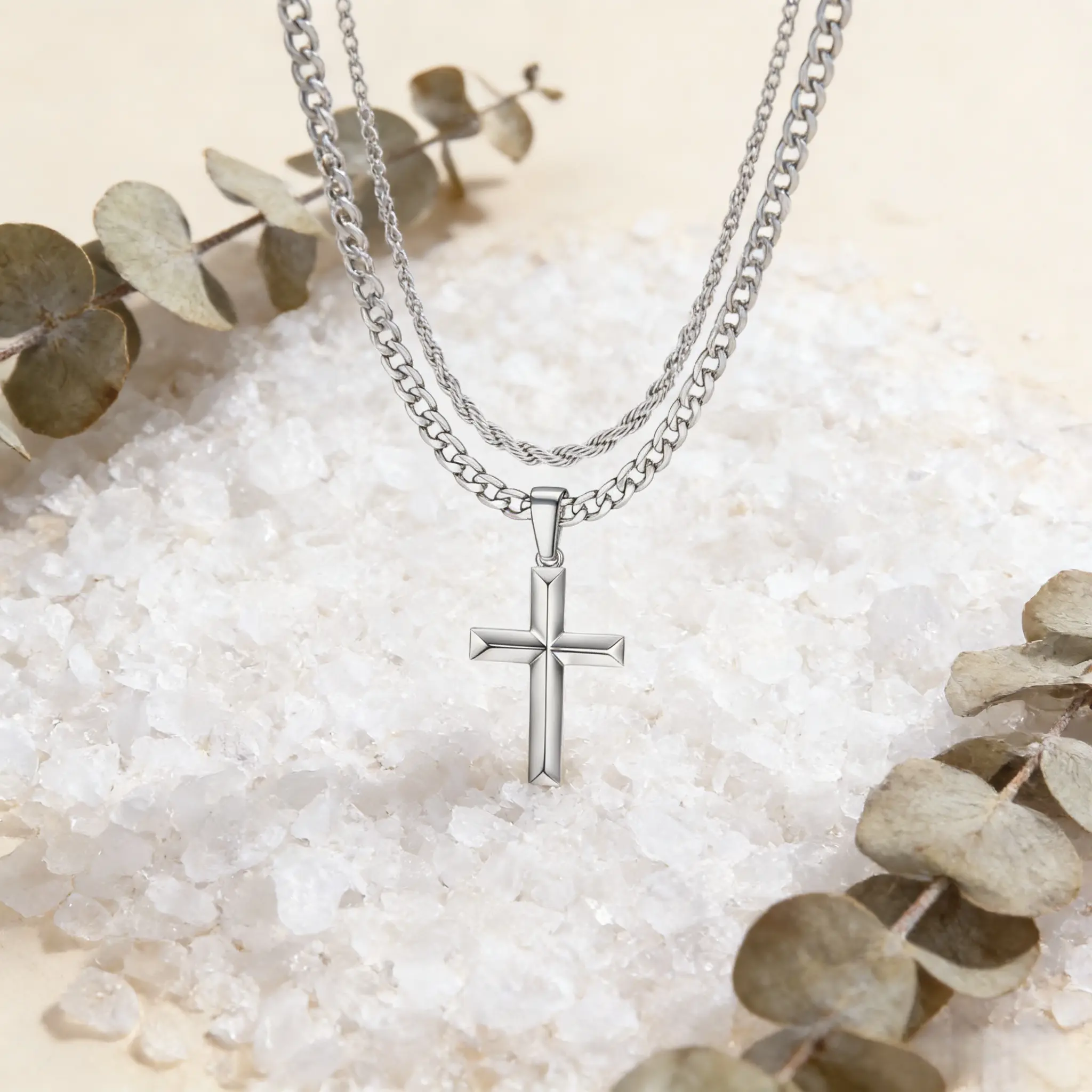 Invest in a necklace that works as hard as you do—this stainless steel cross Cuban link chain is the ultimate timeless accessory that will never go out of style.