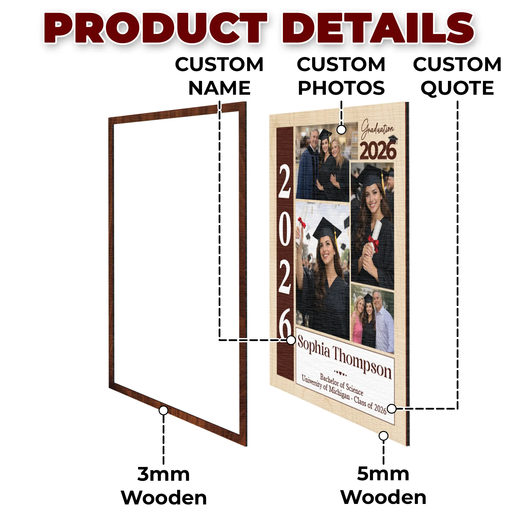 Personalized Graduation Photo Wooden Sign, Custom Graduation Frame, Class of 2026 Keepsake, Graduation Decoration, Congrats Graduate Gift, Graduate University With Family, Gift for Him Her
