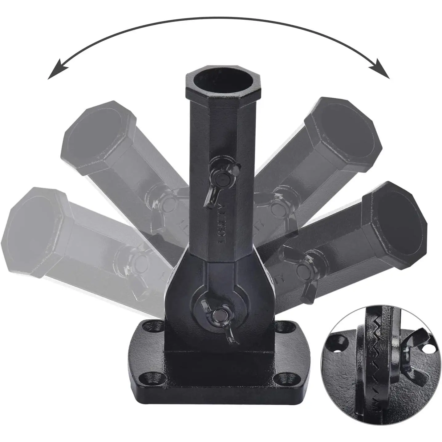 ·Step 4: Adjust the angle you like, insert the flagpole into the hole, and then tighten the butterfly screw to fix the flagpole.