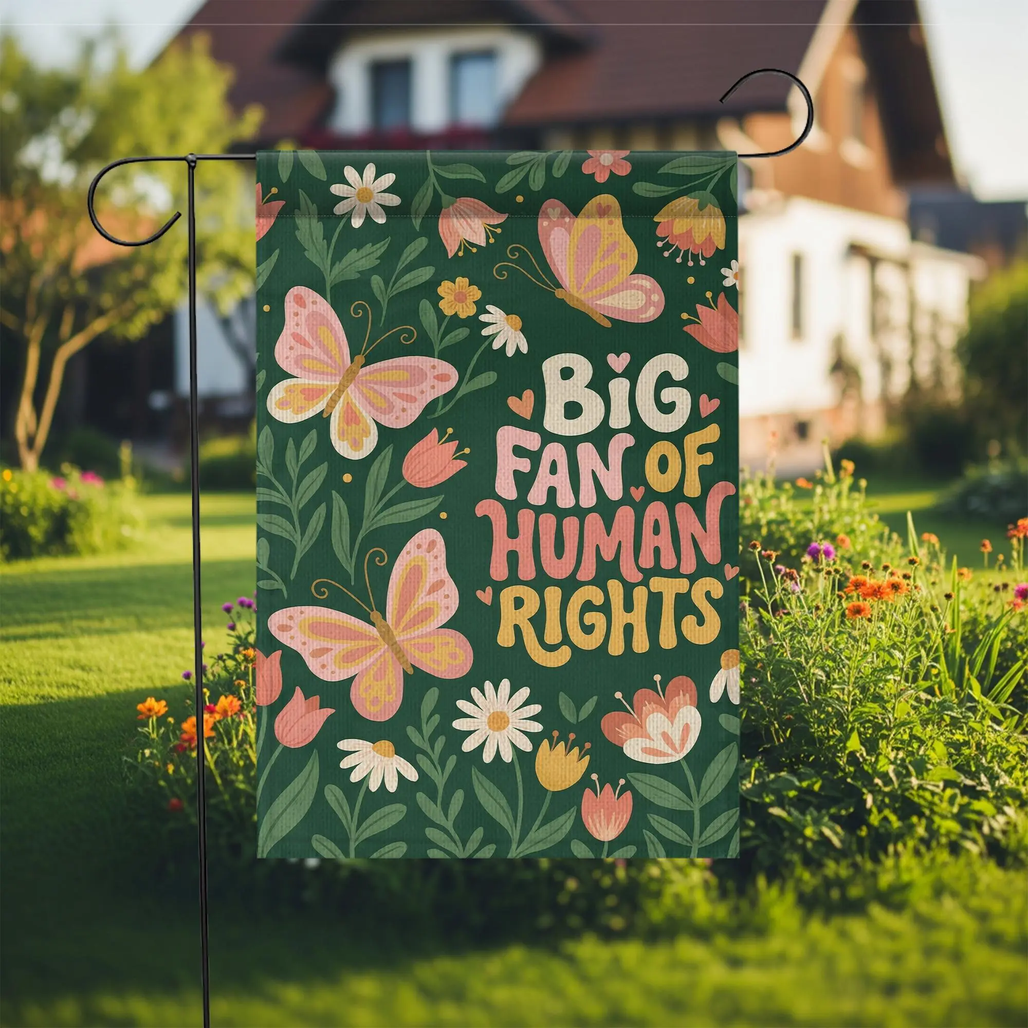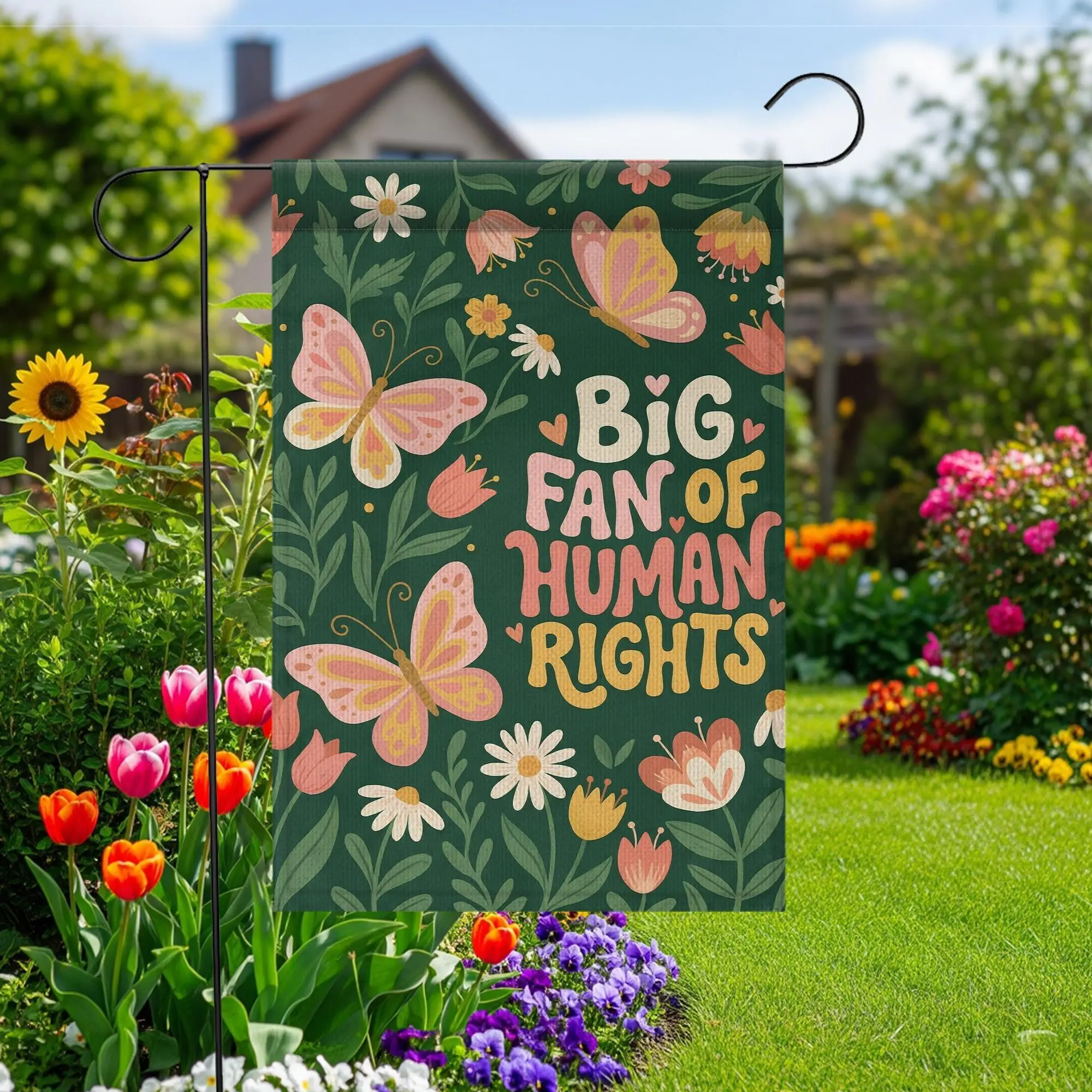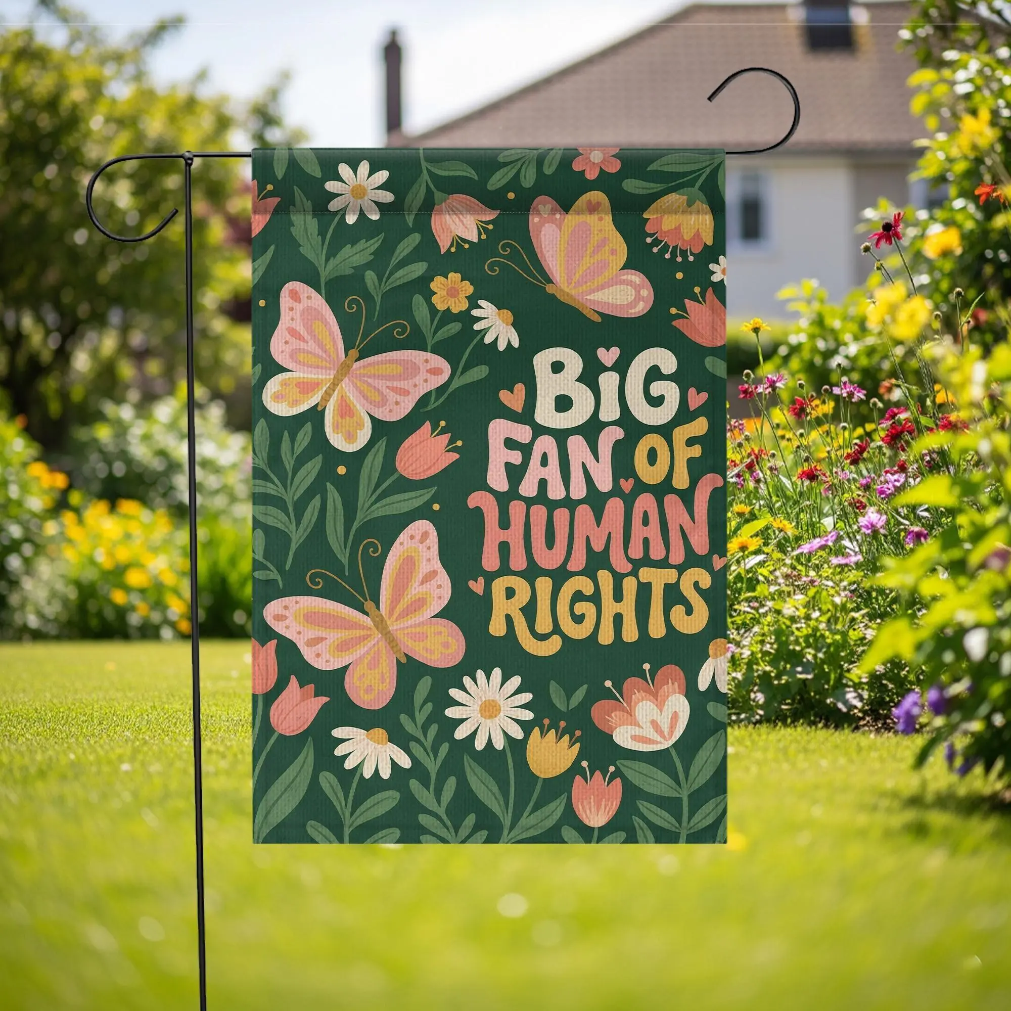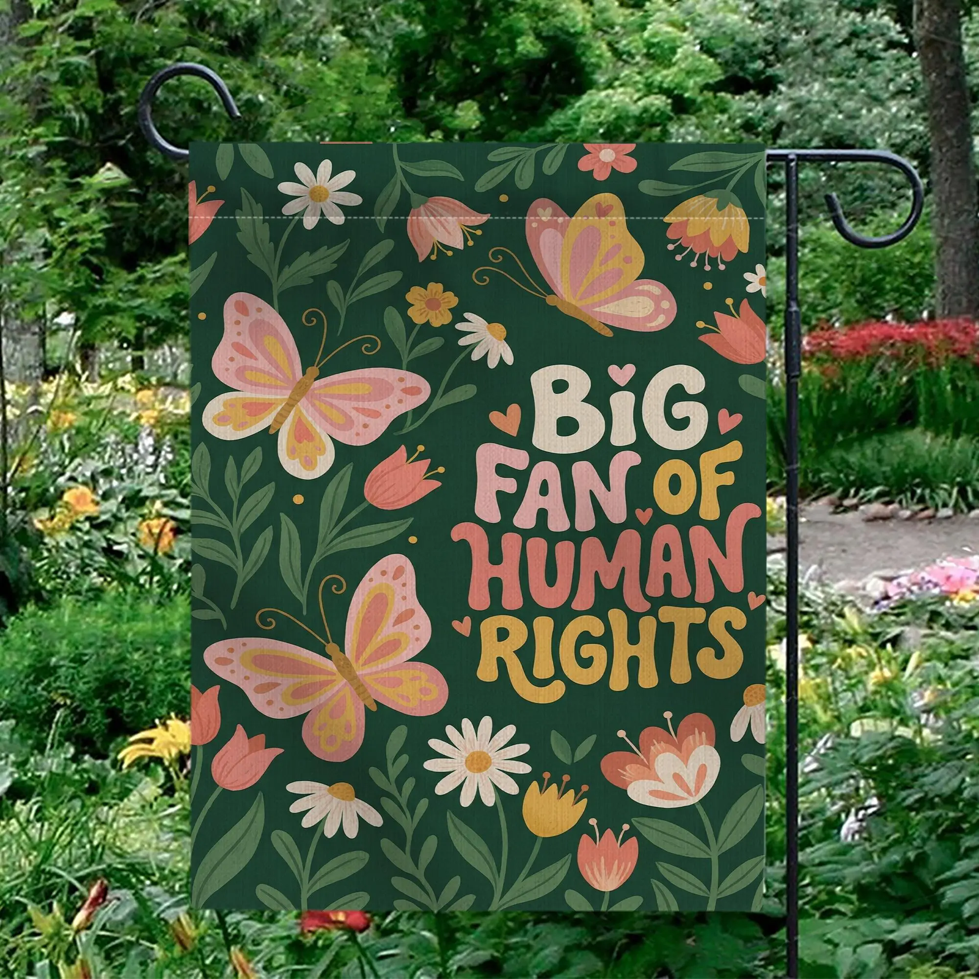 Big Fan Of Human Rights Garden Flag Retro Floral Butterfly Yard Sign Social Justice Decor