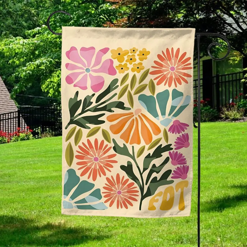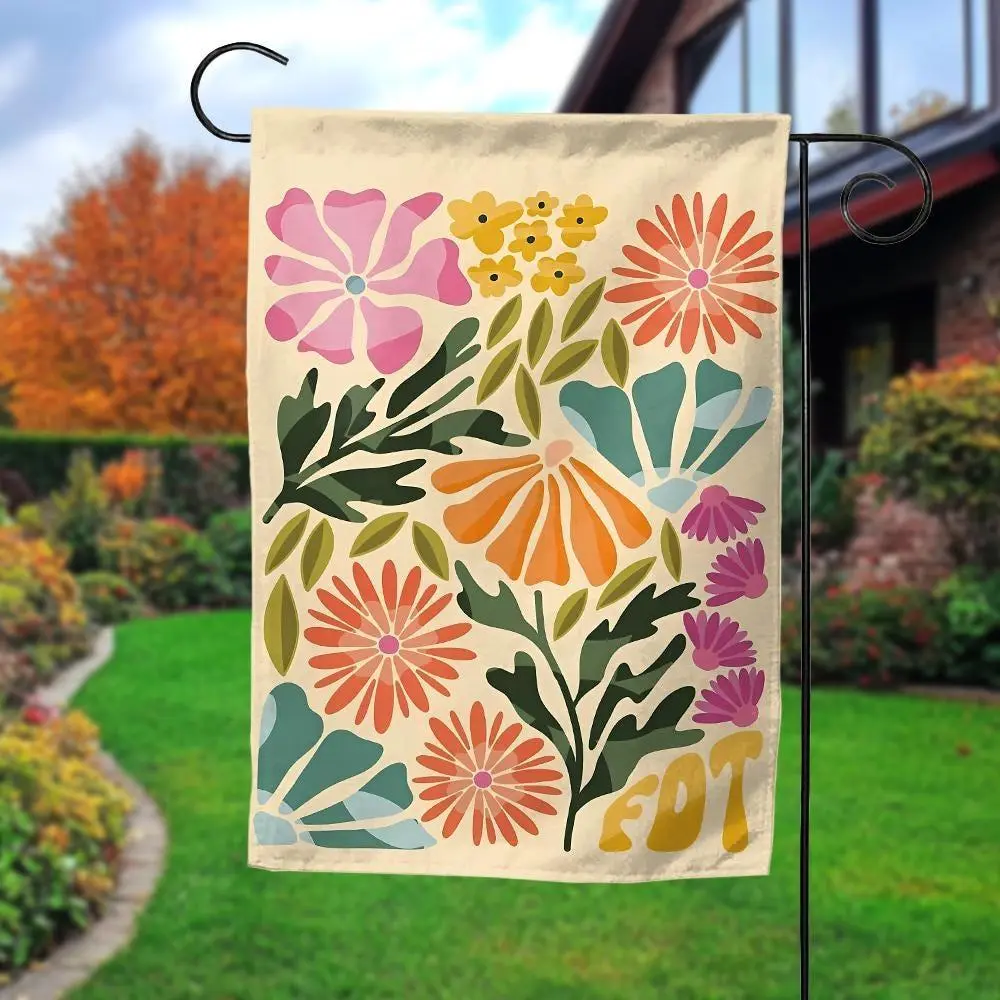 Retro Anti Tr^mp Garden Flag Groovy Fck Tr^mp Yard Decor Funny Sarcastic Political Banner Floral Liberal Gift Aesthetic Outdoor Sign