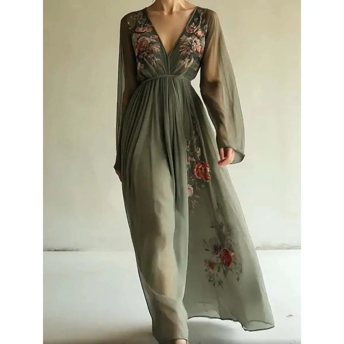 Dokotoo Women's Casual Bohemian Floral Dress 2026 V-Neck Long Puff Sleeve Midi Dress Soft Fabric Comfortable Summer Dress - Womenswear