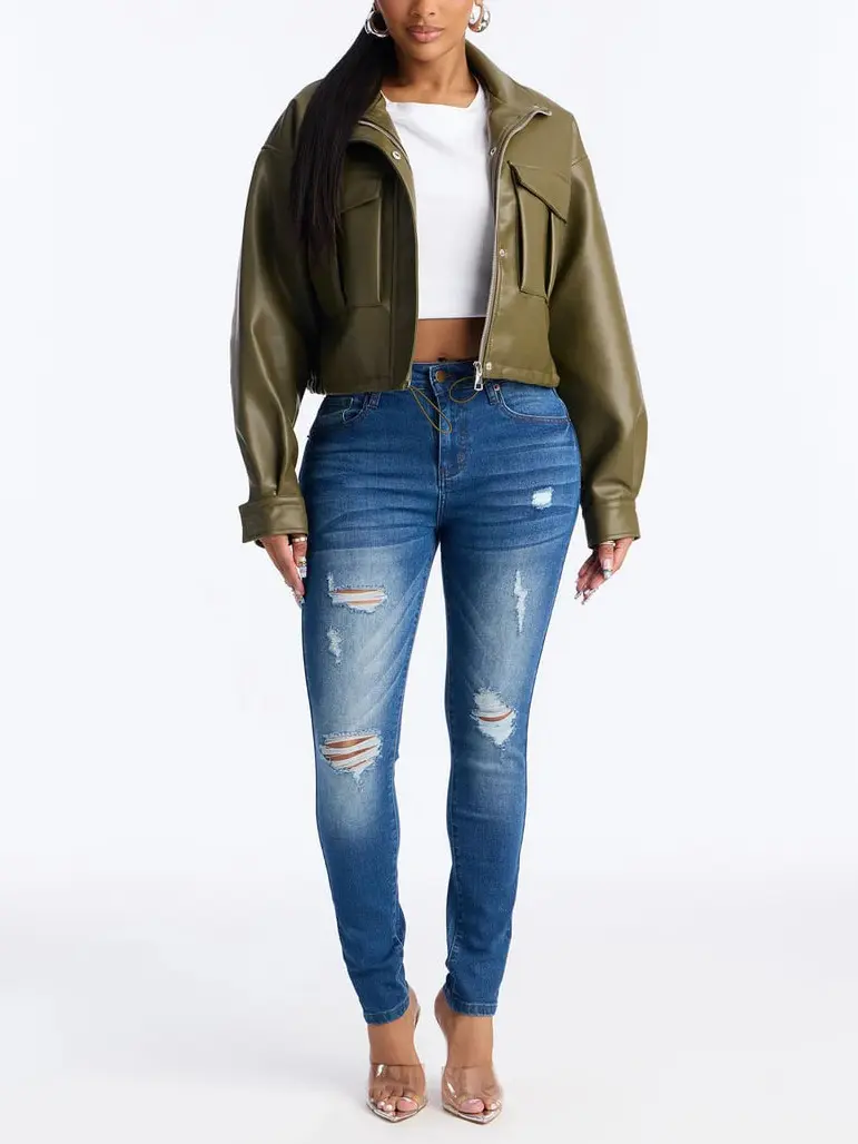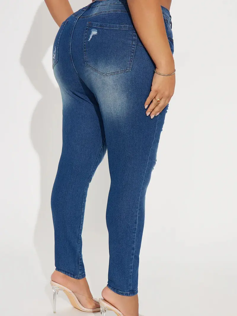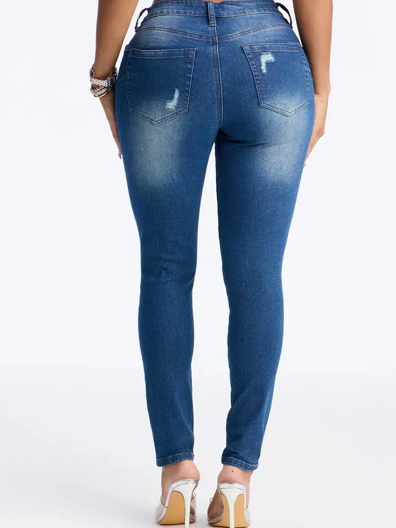 Classic High Waist Skinny Jeans - Medium Blue Wash